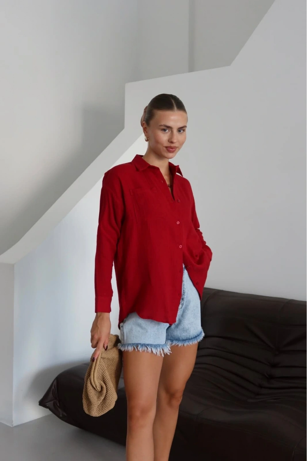 Şıklığı seven kadınların tercihi olan Tek Cep Müslin Gömlek, günlük kullanımdan özel davetlere kadar geniş bir kullanım alanı sunar.