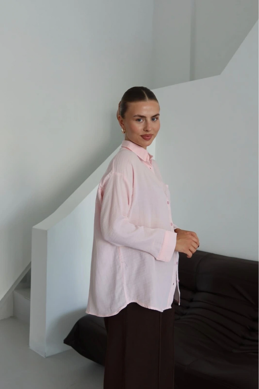 Tek cepli müslin gömlek pembe pt