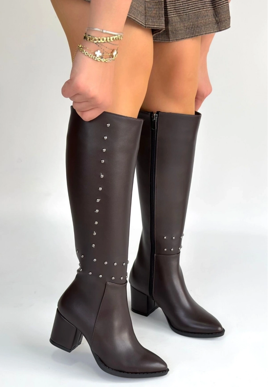 Tiyan Kahverengi Cilt Topuklu Çizme