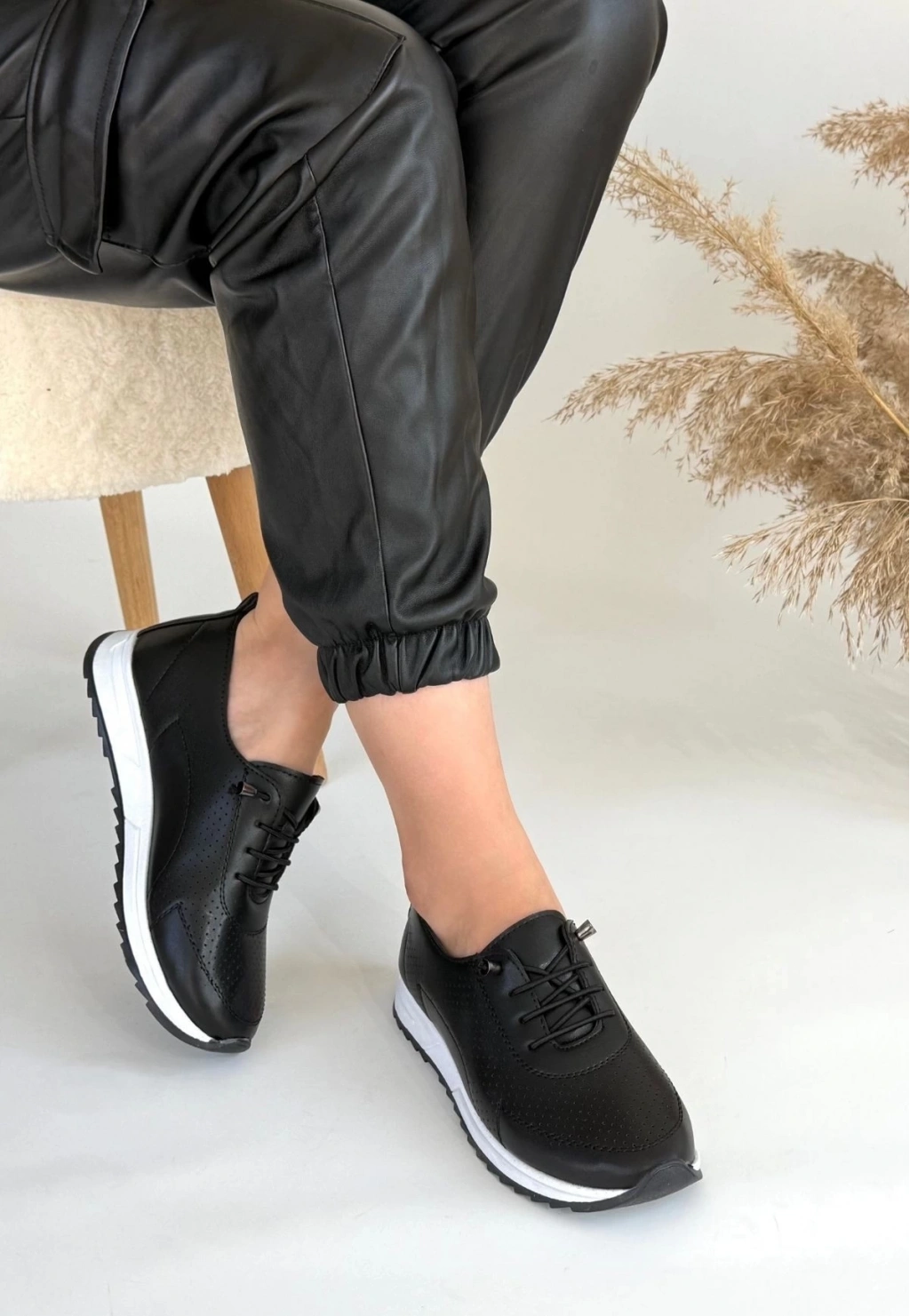 Tone Siyah Cilt Bağcıklı Spor Ayakkabı