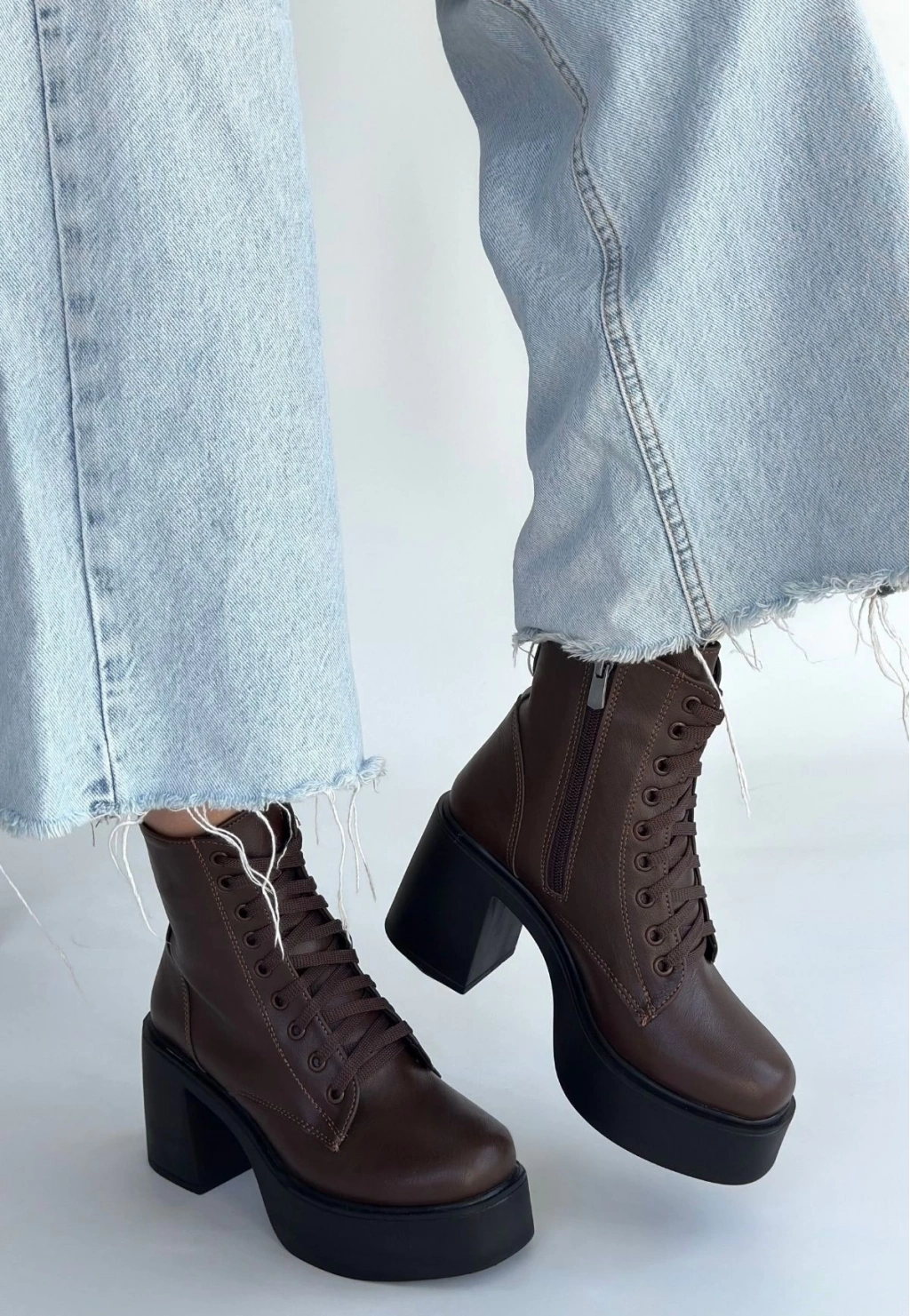 Tsan Kahverengi Cilt Bağcıklı Topuklu Bot