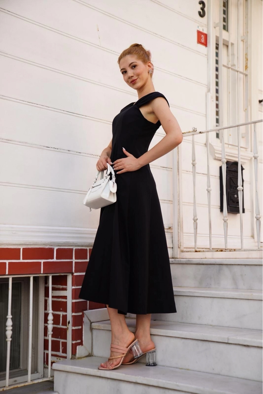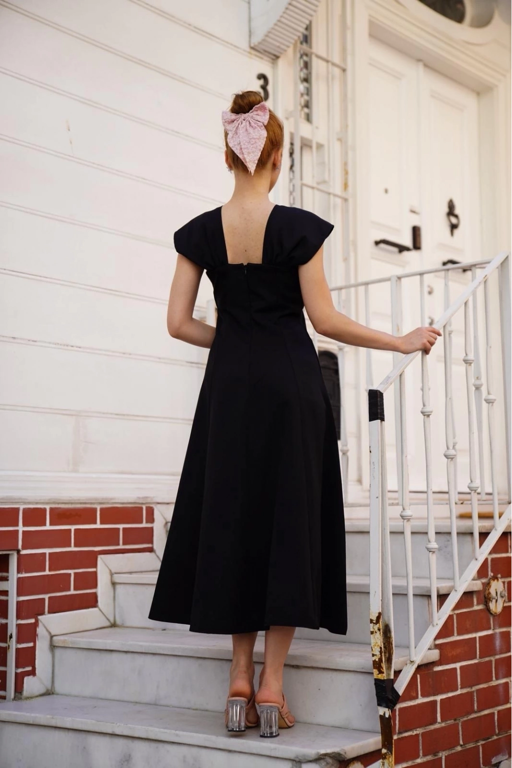 U yaka prenses elbise siyah s255101, şıklığı ve zarafeti bir arada sunuyor.