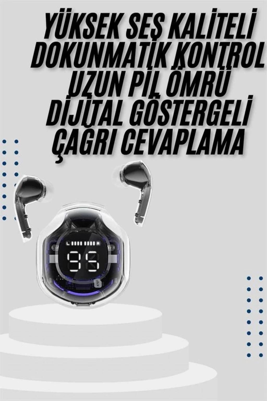 Yenilikçi tasarımı ve güçlü teknik özellikleriyle dikkat çeken bu kablosuz kulaklık modeli, günlük hayatınızda hem konfor hem de yüksek performans sunmak üzere geliştirildi. Bluetooth 5.3 teknolojisi sayesinde daha stabil bir bağlantı, düşük gecikme süresi ve enerji tasarrufu sağlayarak kablosuz özgürlüğün keyfini sonuna kadar yaşatır. İster müzik dinleyin, ister oyun oynayın, her durumda akıcı ve kesintisiz bir ses deneyimi sunar.ENC destekli mikrofon teknolojisi, çevresel gürültüleri filtreleyerek özellikle telefon görüşmelerinde sesinizin karşı tarafa net bir şekilde iletilmesini sağlar. Geliştirilmiş mikrofon yapısıyla dış ortamın karmaşasında bile berrak bir iletişim mümkündür. Ayrıca, HiFi stereo ses çıkışı ve extra bass özelliğiyle, dinlediğiniz her parçada güçlü baslar ve dengeli tizlerle zengin bir ses deneyimi yaşarsınız.Kulaklık kutusunun ön yüzeyinde yer alan dijital LED ekran, her iki kulaklığın ve şarj kutusunun pil seviyesini anlık olarak takip etmenizi sağlar. Kullanımı daha pratik hale getiren bu özellik, gün içinde kesintisiz bir performans için ideal bir çözümdür. Farklı boyutlarda gelen yedek silikon başlıklar ise, kişisel kullanımınıza göre en uygun olanı seçmenize olanak tanır ve kulağınızda tam oturarak maksimum rahatlık sağlar.Dokunmatik kontrol sensörleri sayesinde müziği durdurma, parçalar arasında geçiş yapma ve gelen çağrılara cevap verme işlemlerini sadece bir dokunuşla gerçekleştirebilirsiniz. Ergonomik yapısı sayesinde kulaklığa zarar vermeden uzun süreli kullanım sağlarken, hafif ve portatif tasarımı ile her an yanınızda taşıyabileceğiniz bir ürün haline gelir.İster iş yerinde, ister yolculukta, ister spor yaparken… Bu kulaklık her ortamda sesin gücünü ve netliğini en iyi şekilde deneyimlemenizi sağlar. Şık görünümü ve fonksiyonel özellikleriyle tarzınızı tamamlayacak, günlük hayatınızın vazgeçilmez bir parçası olacak.