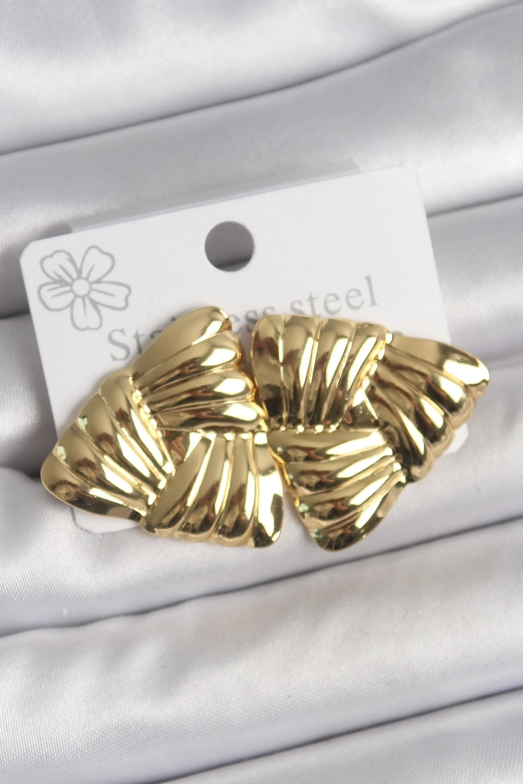 ® 316 Çelik Gold Renk İşlemeli Üçgen Model Kadın Küpe