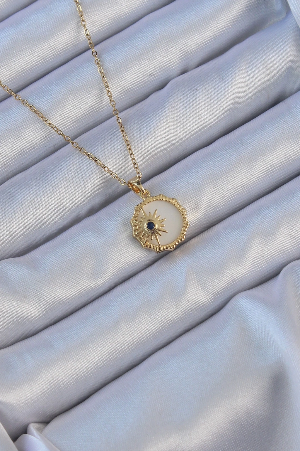 ® 316L Çelik Altın Renk Zirkon Taşlı Mineli Kutup Yıldızı Kolye