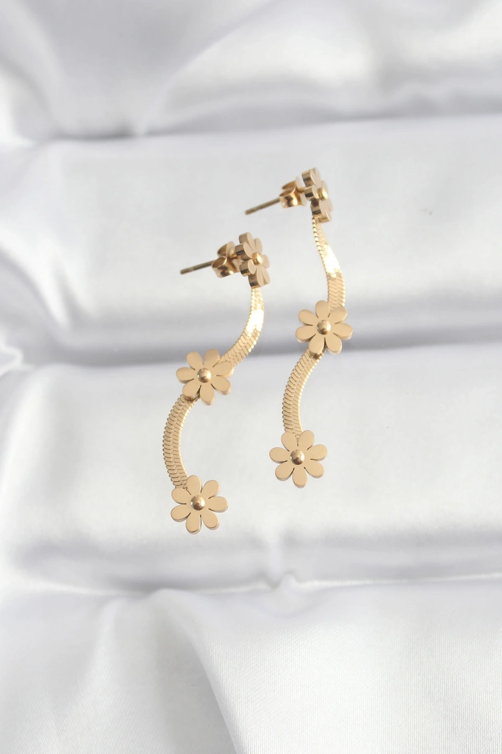 ® 316L Çelik Gold Renk İtalyan Zincir Papatya Küpe