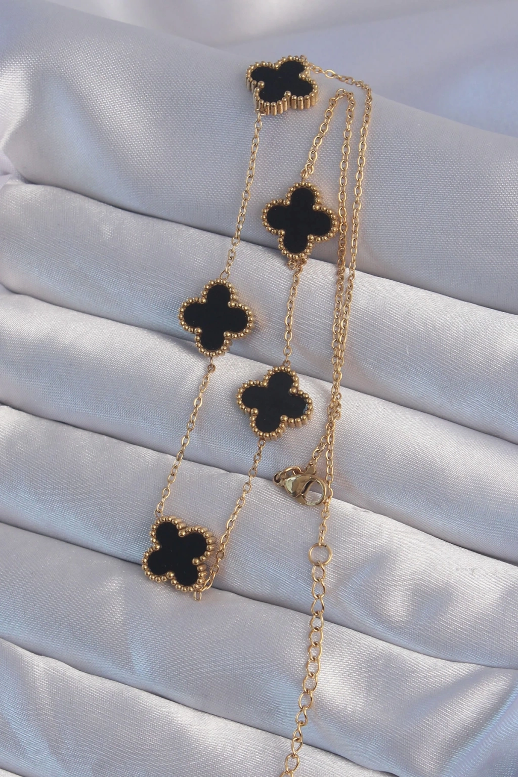 ® 316L Çelik Gold Renk Siyah Mineli Yonca Kolye