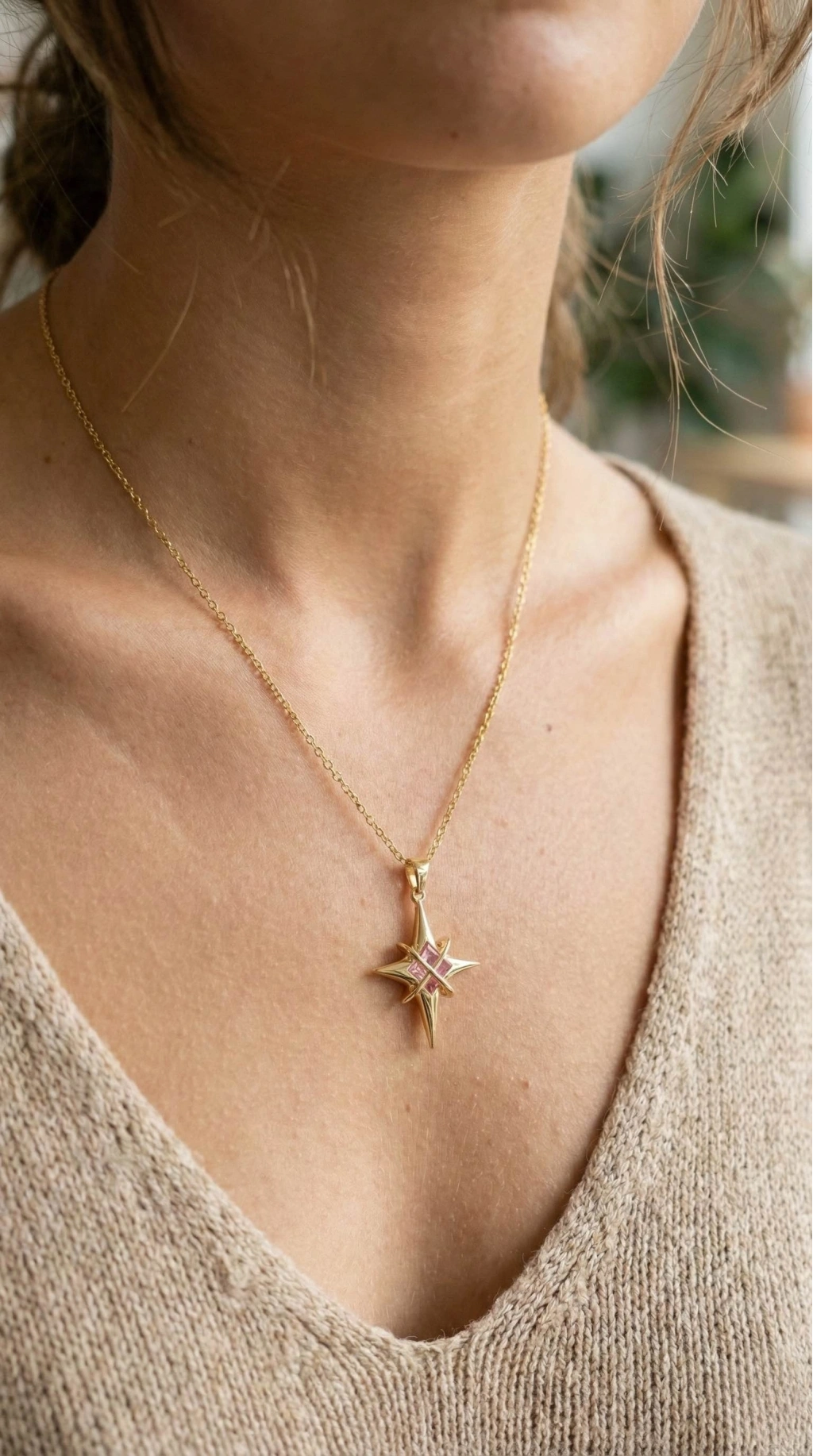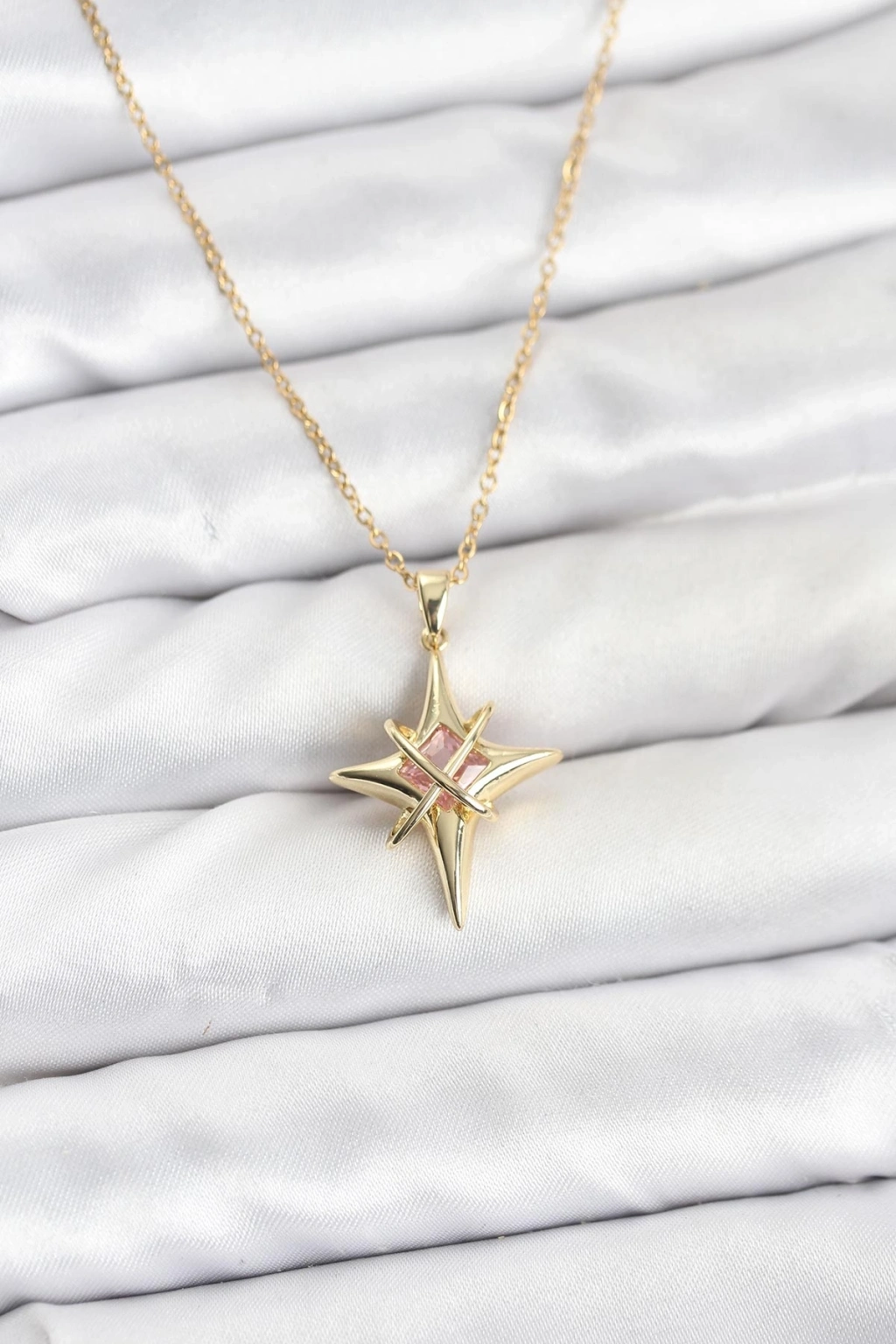 ® 316L Çelik Gold Renk Zirkon Taşlı Kutup Yıldızı Model Kadın Kolye
