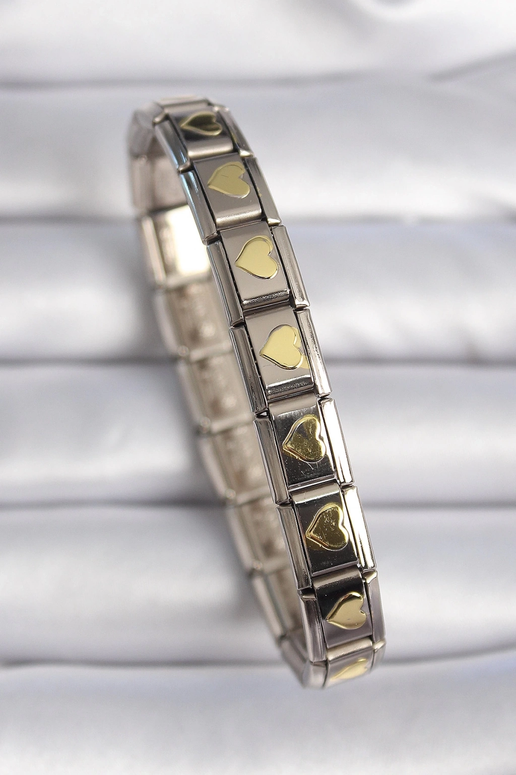® 316L Çelik Gümüş Renk Gold Kalp İşleme Nomination Charm Bileklik