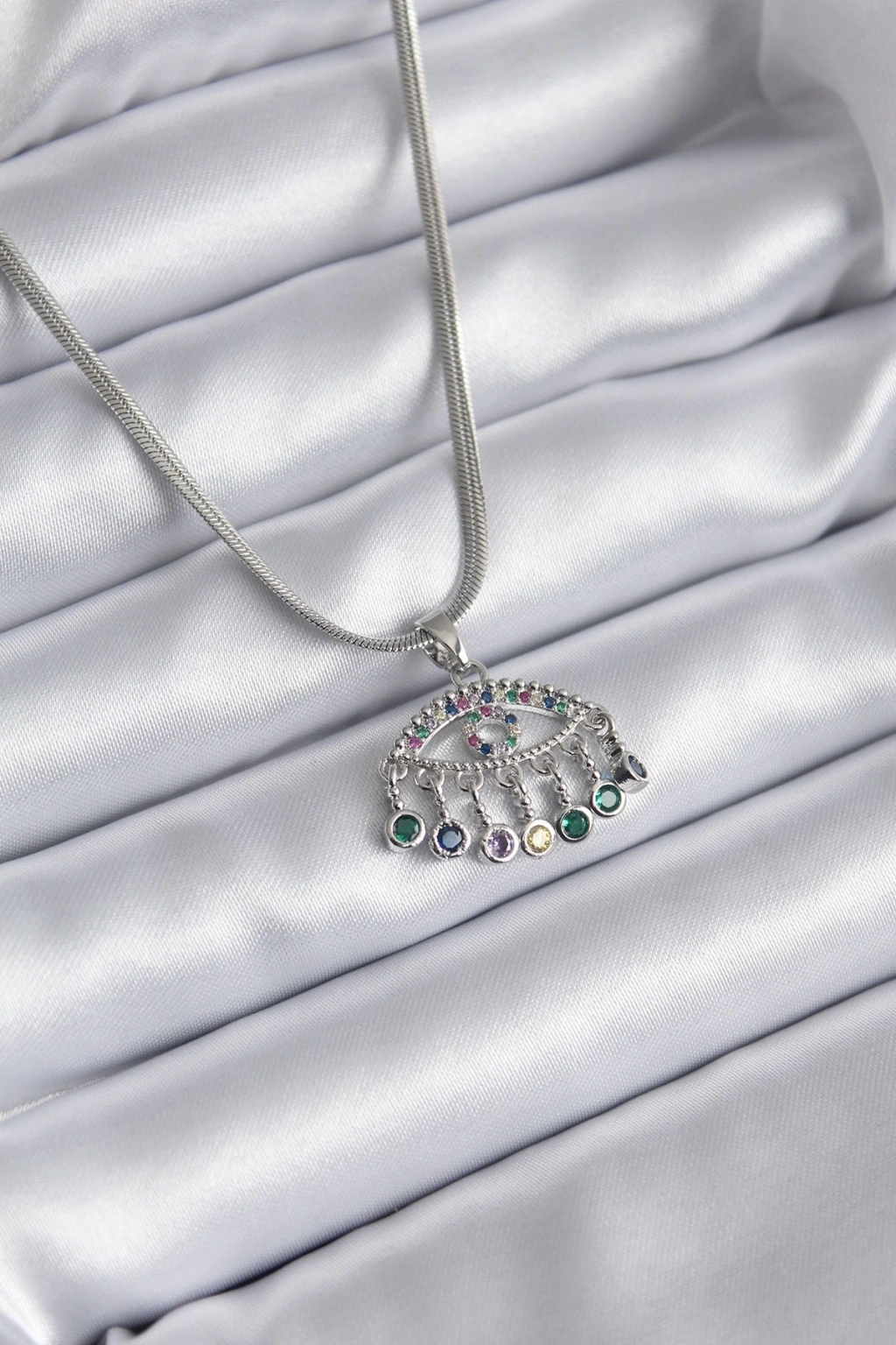 ® 316L Çelik Gümüş Renk İtalyan Zincir Zirkon Taşlı Göz Figür Kadın Kolye