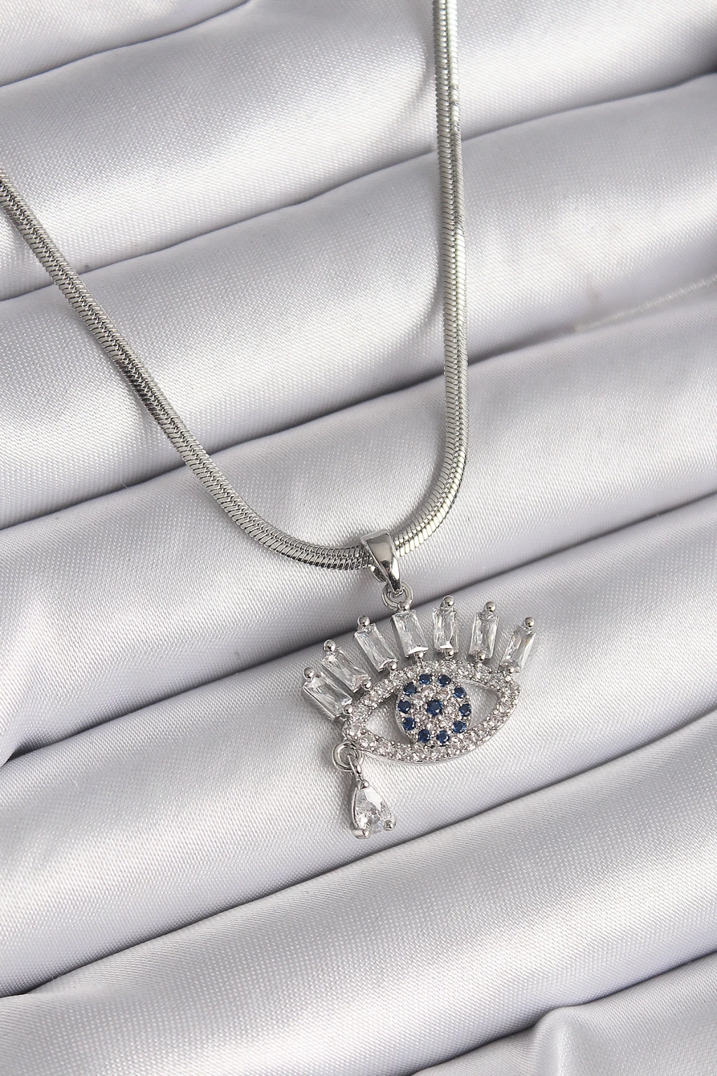 ® 316L Çelik Gümüş Renk İtalyan Zincir Zirkon Taşlı Göz Model Kadın Kolye