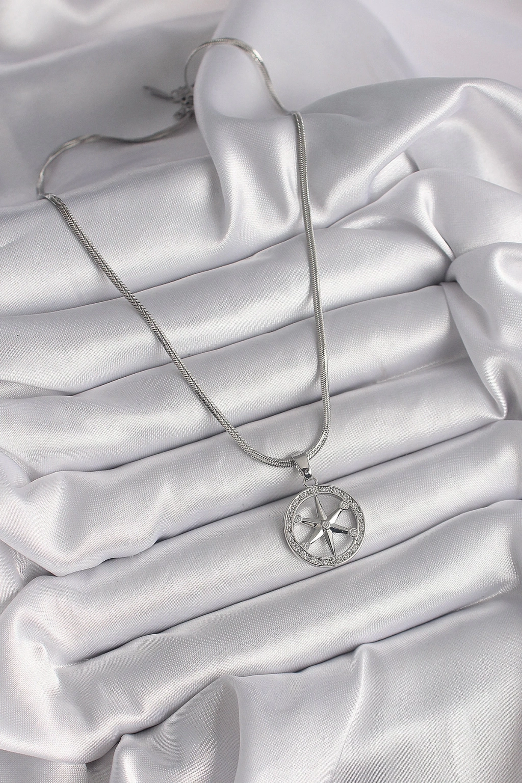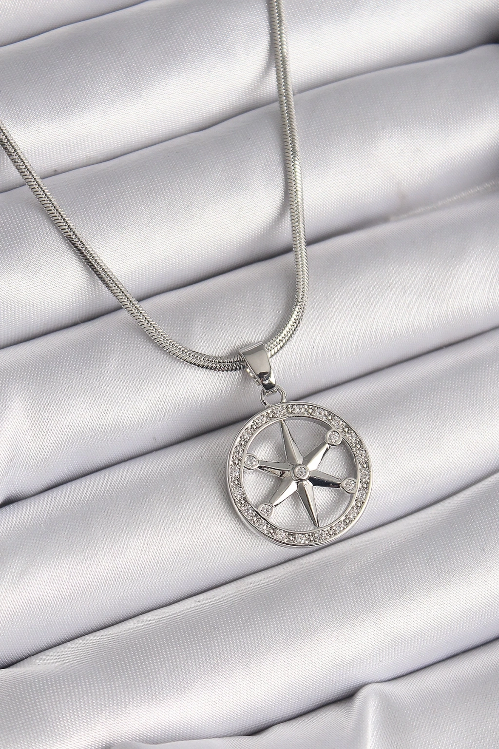 ® 316L Çelik Gümüş Renk İtalyan Zincir Zirkon Taşlı Kutup Yıldız Model Kadın Kolye