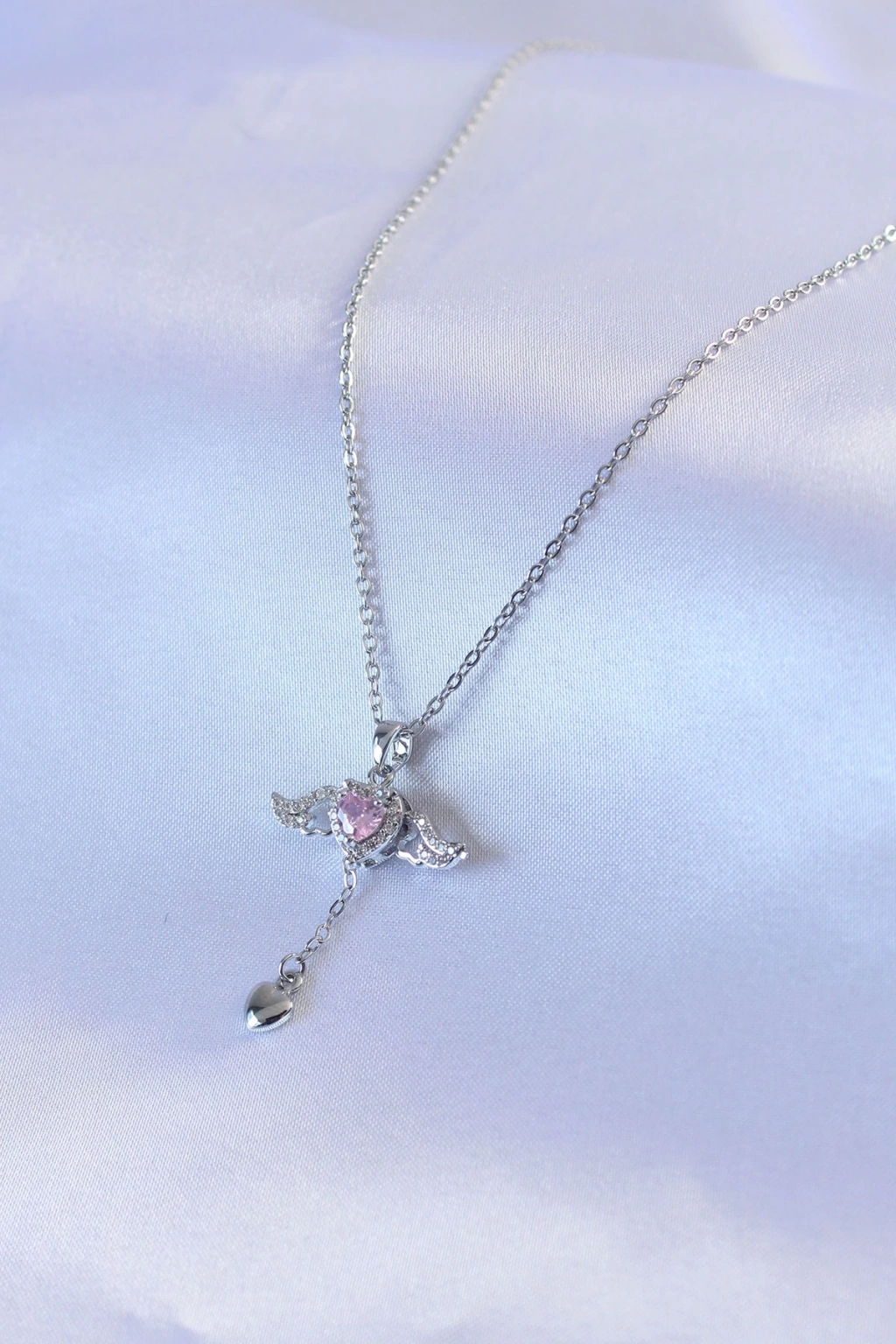 ® 316L Çelik Gümüş Renk Kanatlı Kalp Figür Zirkon Taş Detay Kadın Kolye