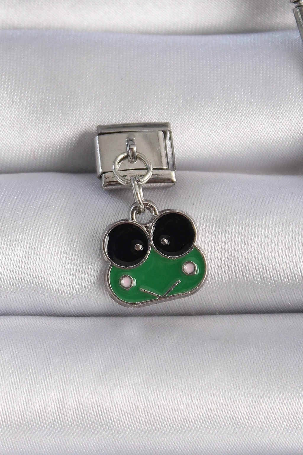 ® 316L Çelik Gümüş Renk Sallantılı Yeşil Kurbağa Figür Nomination Charm
