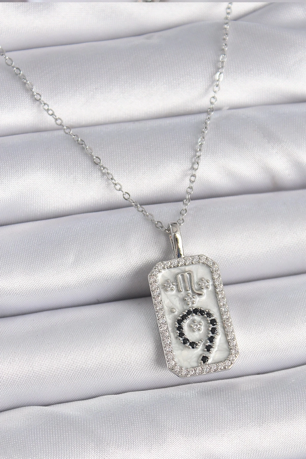 ® 316L Çelik Gümüş Renk Zincir Akrep Burcu Zirkon Taşlı Kadın Kolye