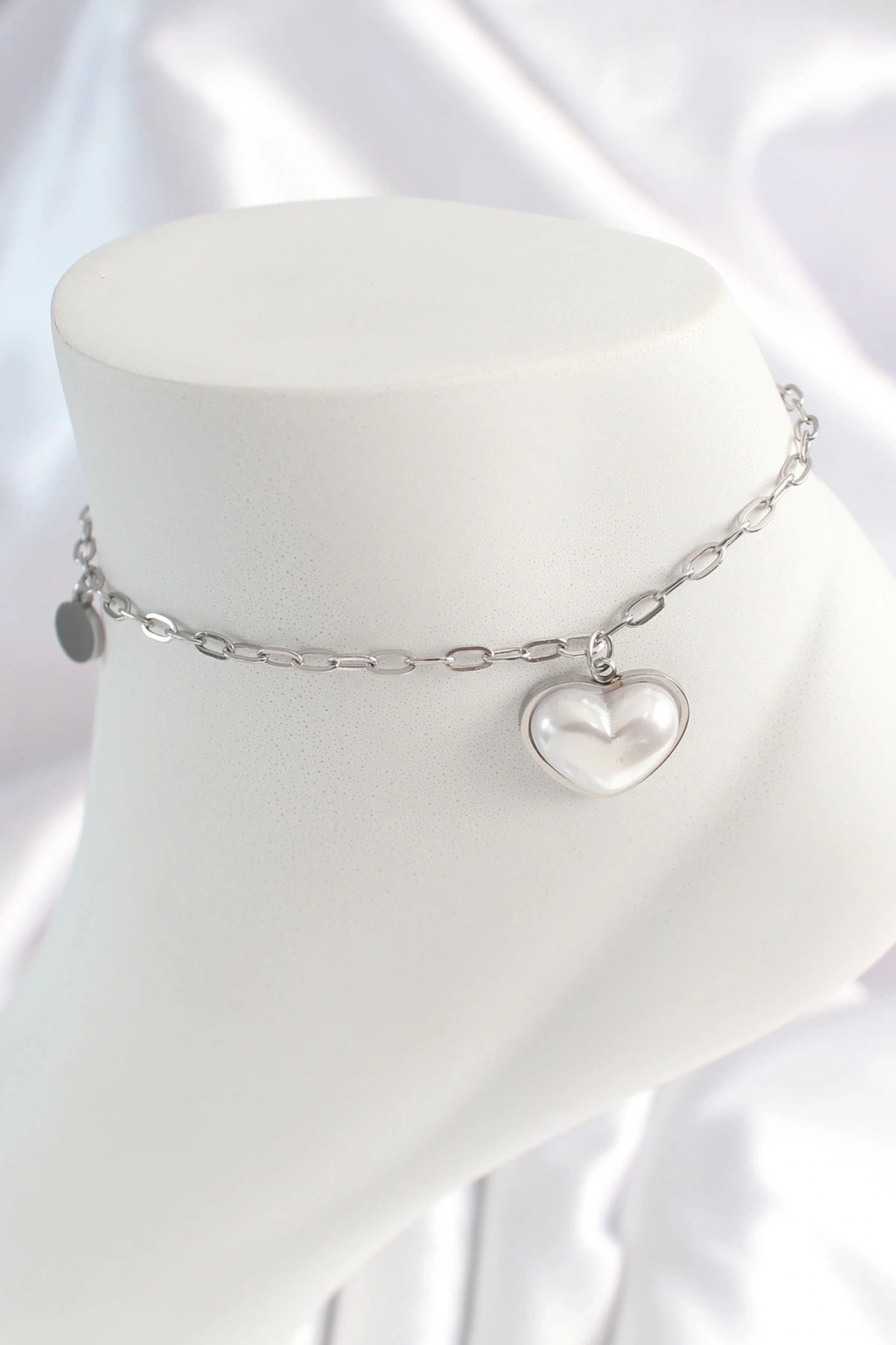 ® 316L Çelik Gümüş Renk Zincir Model 3D Kalp Beyaz Kalp Figür Kadın HalHal