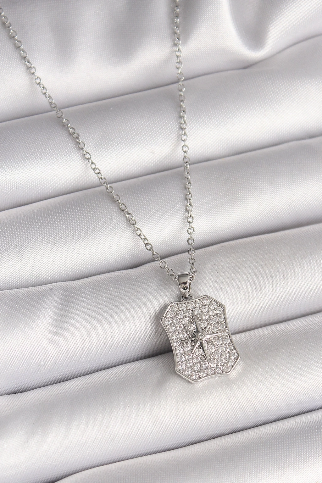 ® 316L Çelik Gümüş Renk Zincir Zirkon Taşlı Kutup Yıldız İşlemeli Madalyon Model Kadın Kolye