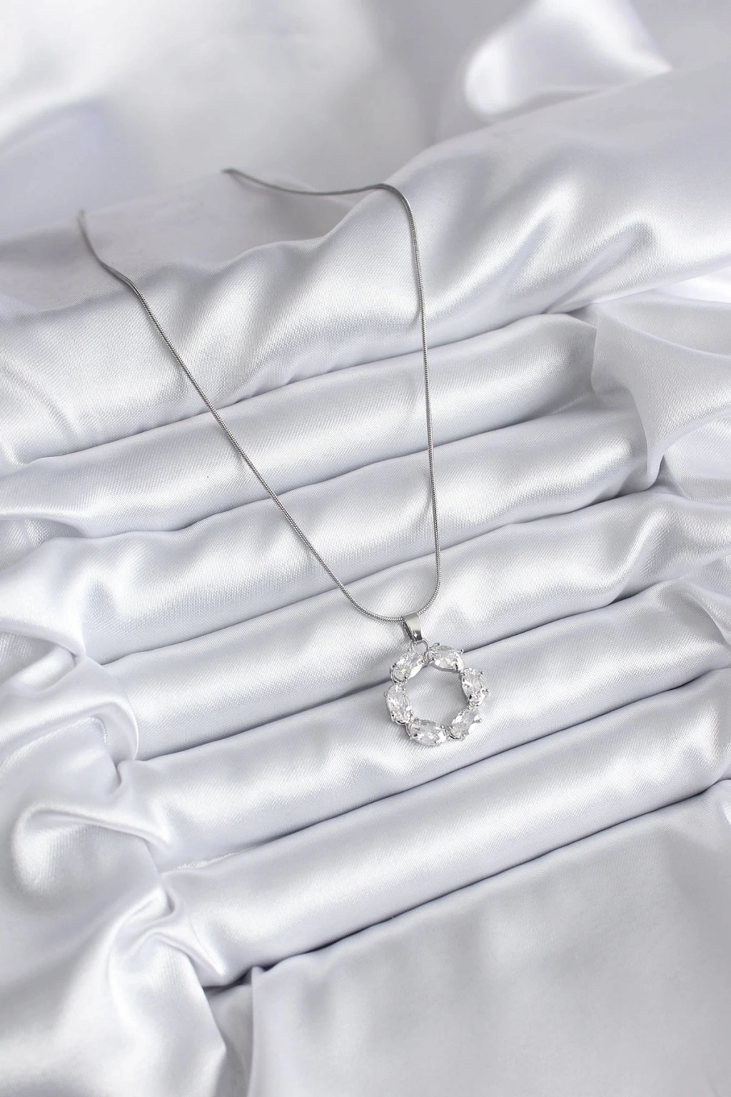 ® 316L Çelik Gümüş Renk Zirkon Taşlı Kadın Kolye