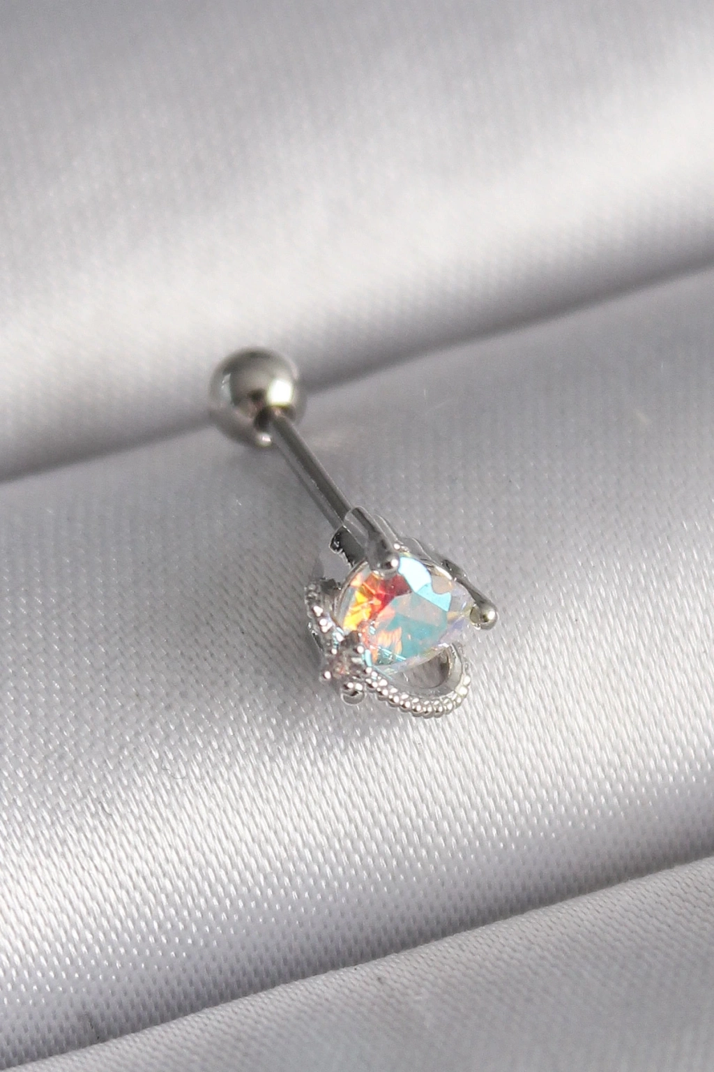 ® 316L Çelik Gümüş Renk Zirkon Taşlı Kalp Tragus Piercing