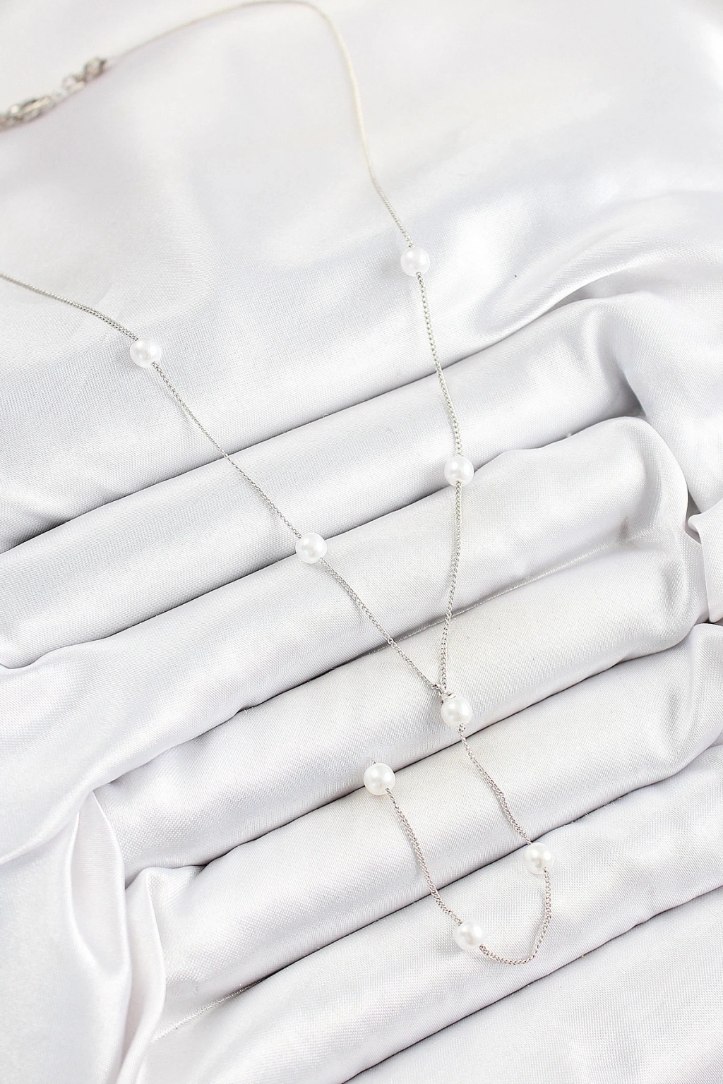 ® Pirinç İnci Figürlü Y Model Gümüş Renk Kadın Kolye