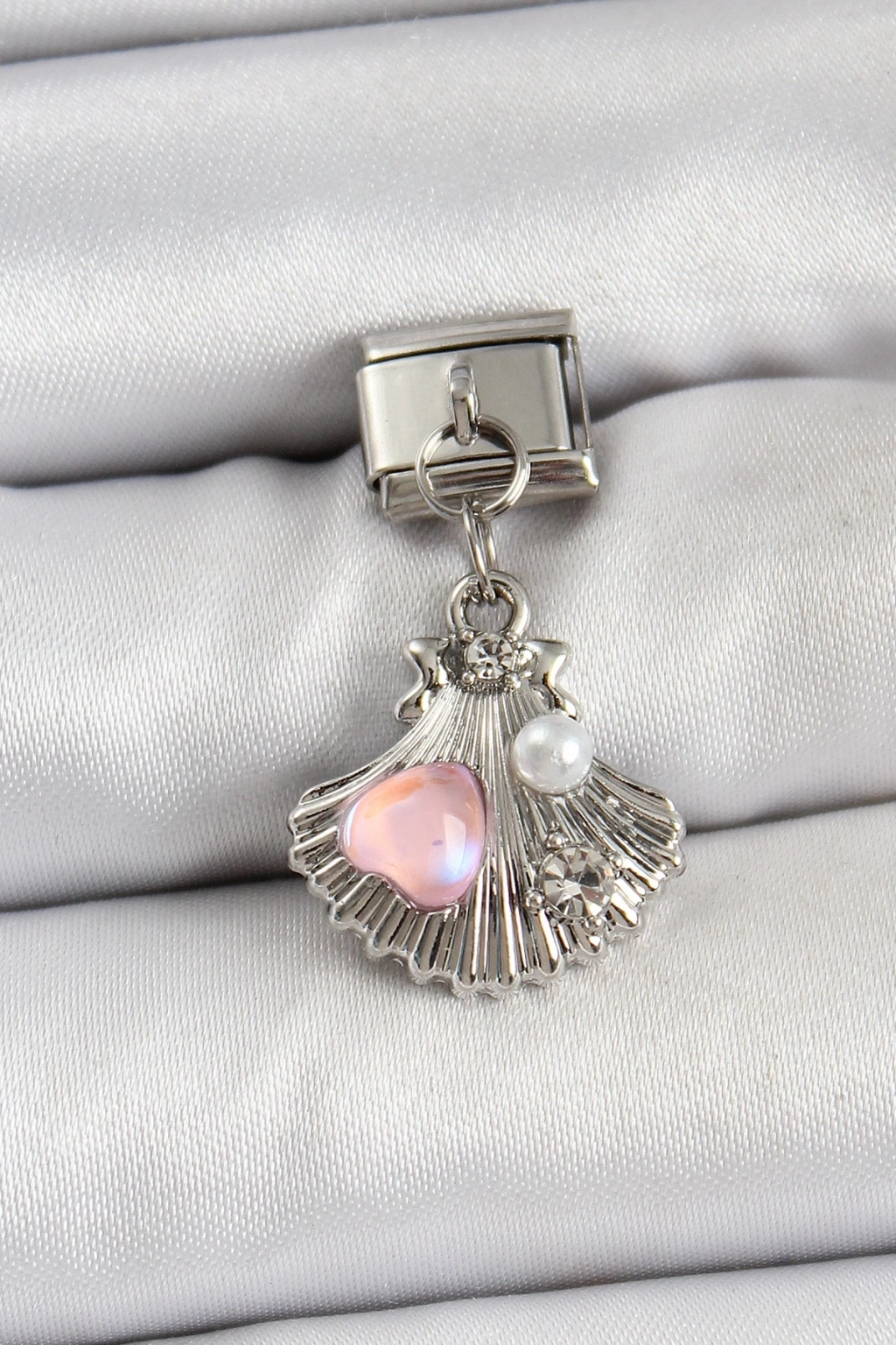 ® 316L Çelik Sallantılı İnci Detaylı İstiridye Model Gümüş Renk Nomination Charm