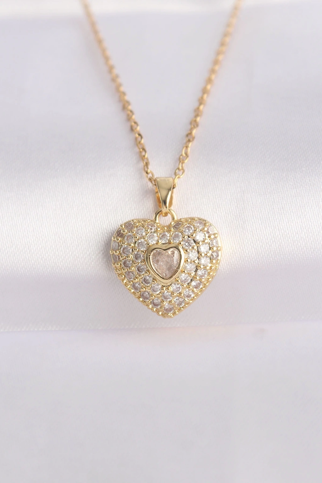 ® 316L Çelik Zincir Altın Renk Zirkon Taşlı Kalp Kolye
