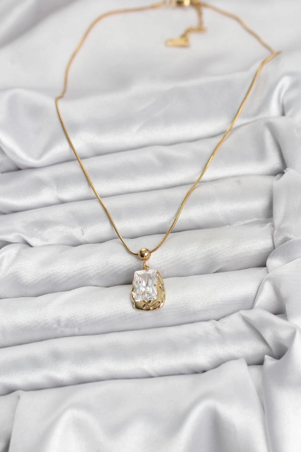 ® 316L Çelik Zincir Gold Renk Zirkon Taşlı Kadın Kolye