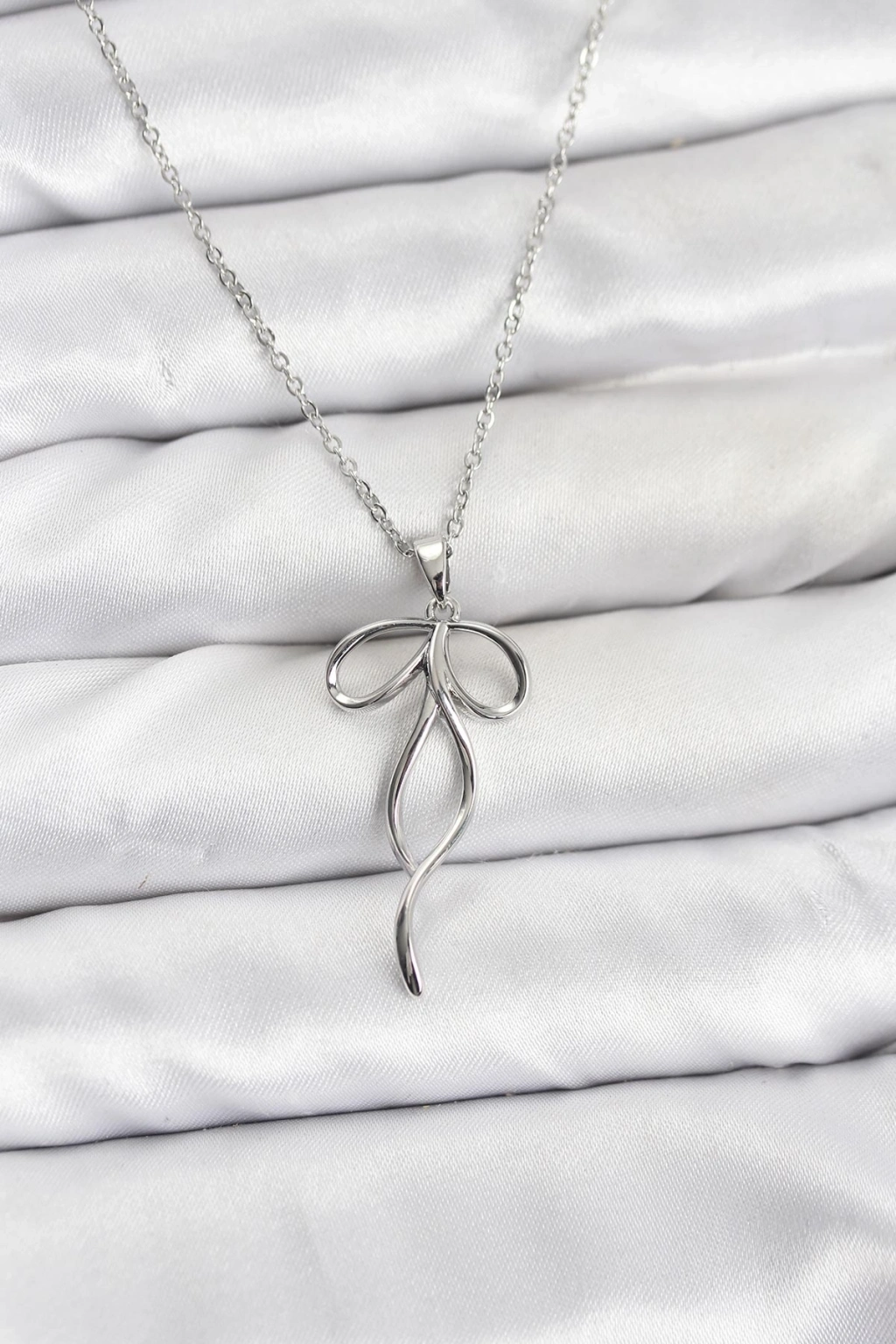 ® 316L Çelik Zincir Gümüş Renk Fiyonk Model Kadın Kolye