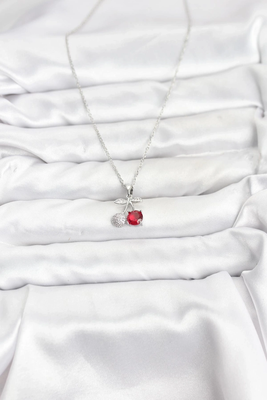 ® 316L Çelik Zincir Gümüş Renk Kiraz Model Zirkon Taşlı Kadın Kolye