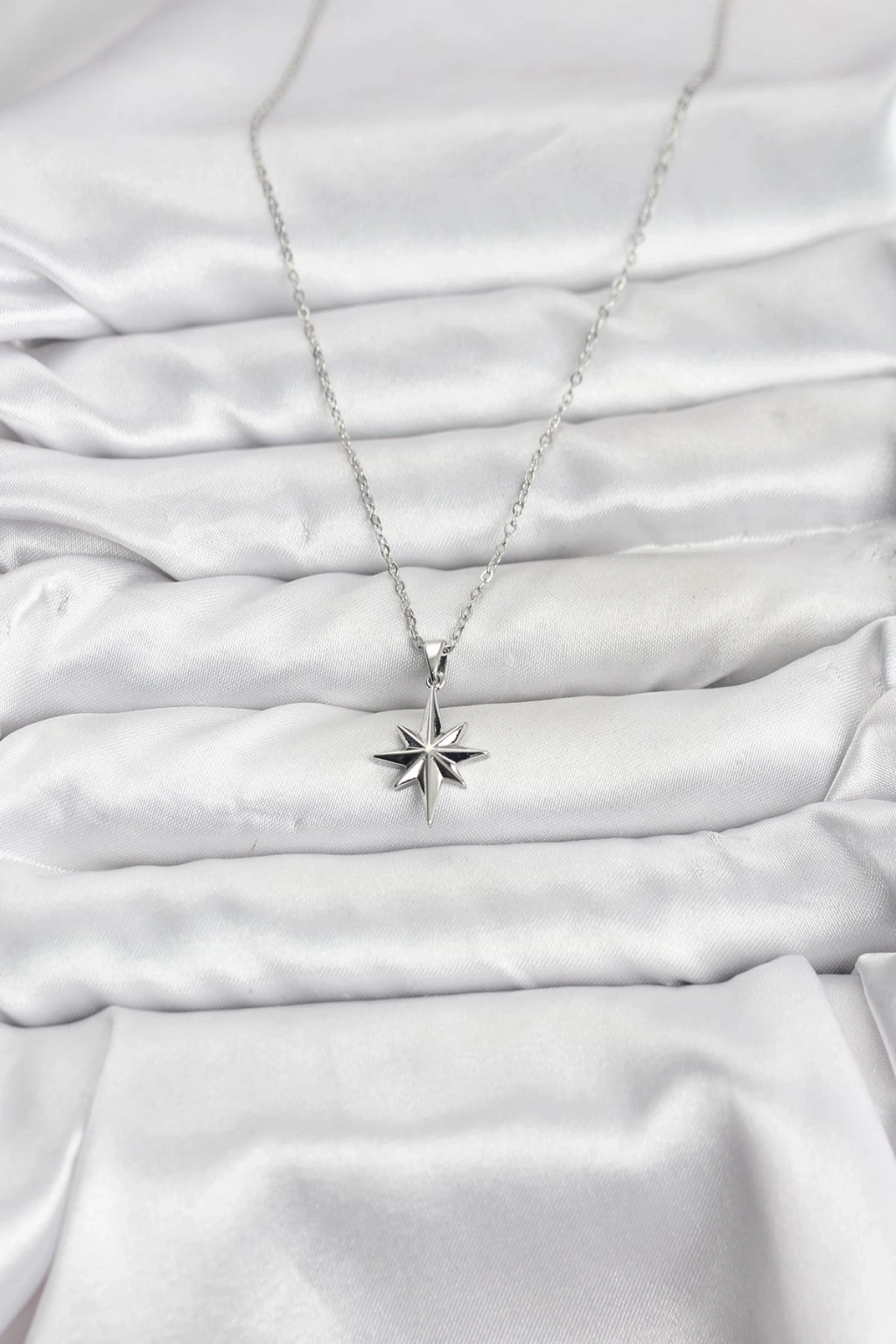 ® 316L Çelik Zincir Gümüş Renk Kutup Yıldızı Model Kadın Kolye