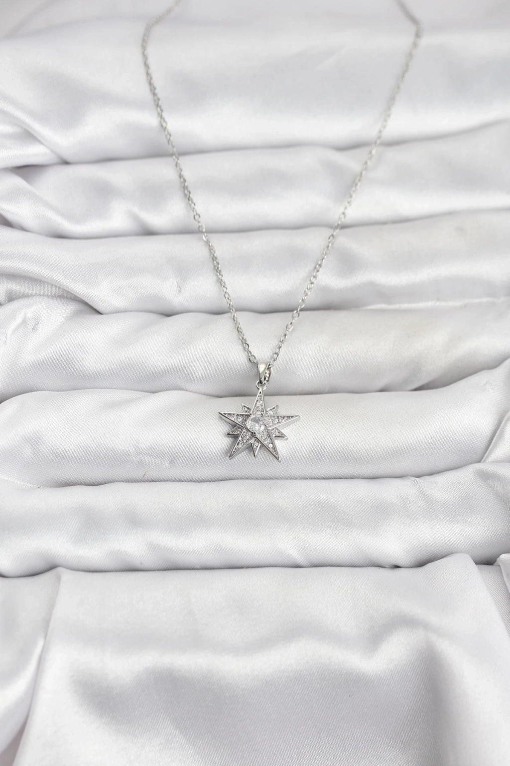 ® 316L Çelik Zincir Gümüş Renk Yıldız Model Zirkon Taşlı Kadın Kolye