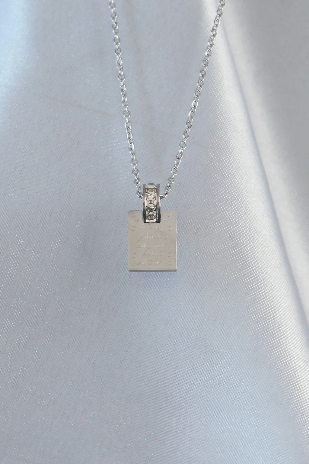 ® 316L Çelik Zincir Gümüş Renk Zirkon Taşlı Aşk Mektubu Kolye