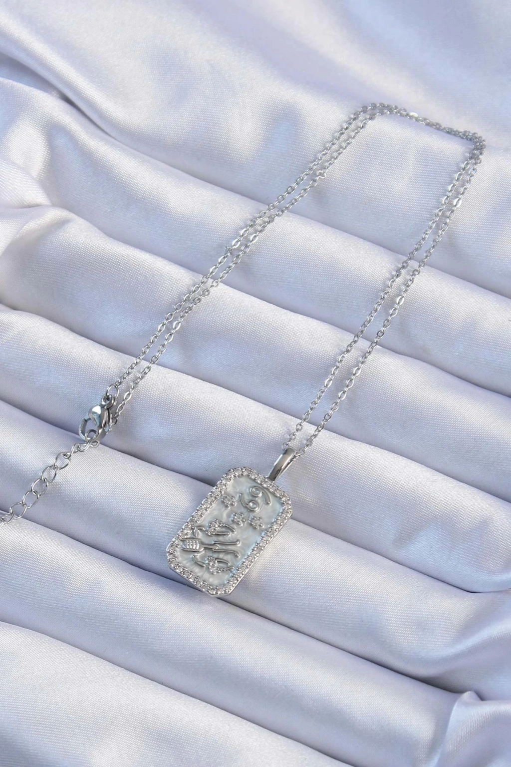 ® 316L Çelik Zincir Gümüş Renk Zirkon Taşlı Çerçeveli Tarot Kolye