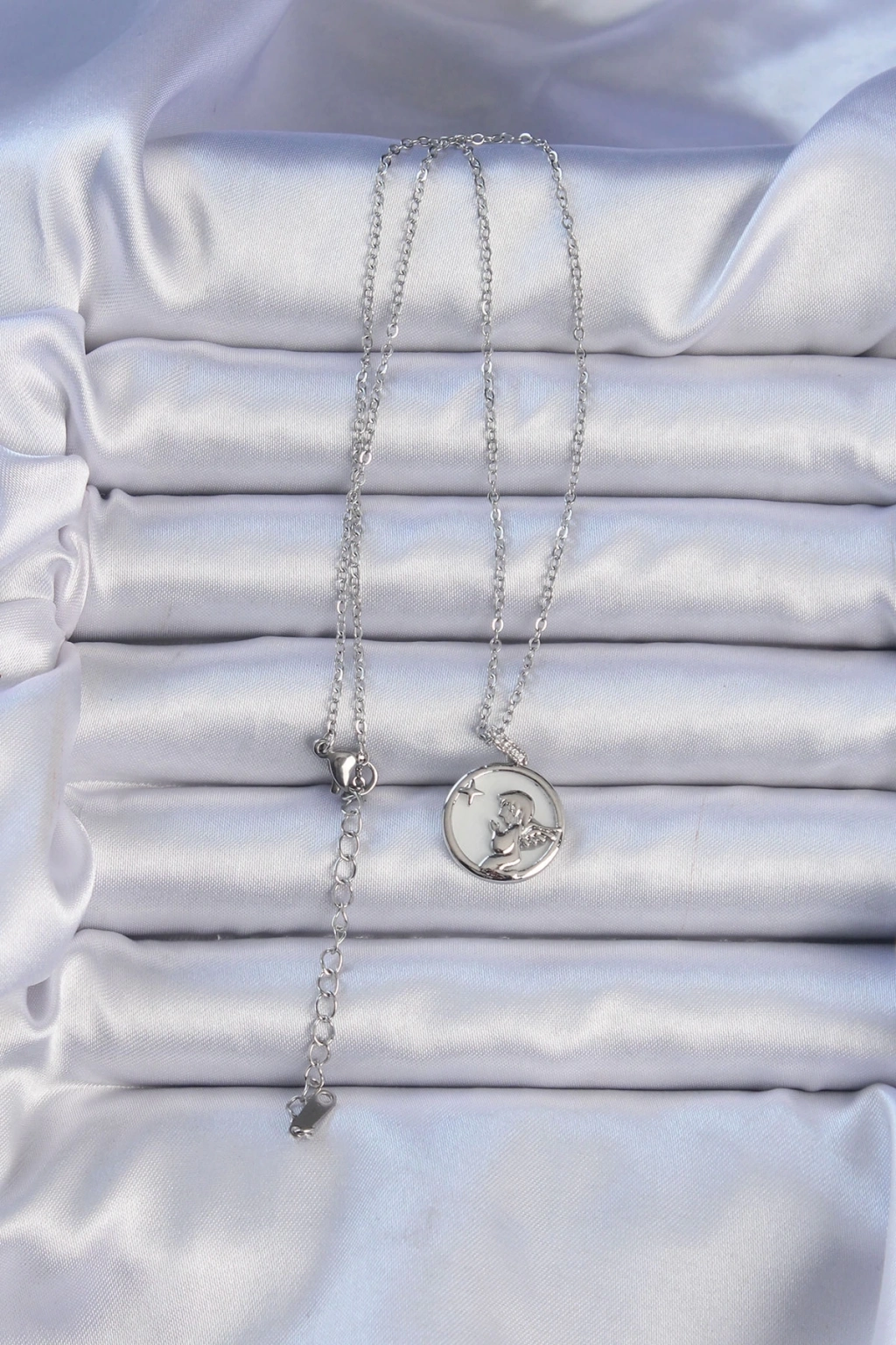 ® 316L Çelik Zincir Gümüş Renk Zirkon Taşlı Mineli Melek Kolye