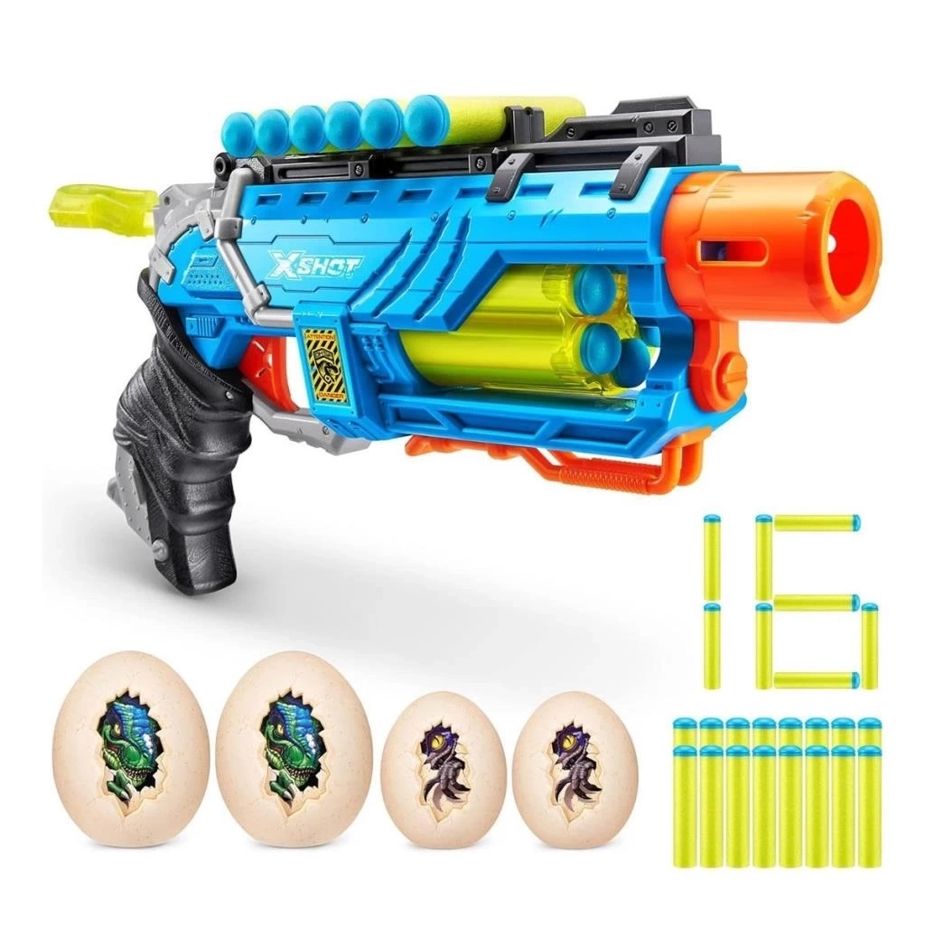 • X-Shot Dino Attack Dino Striker ile vuruşa hazır olun! Dino yumurtalarını 27 m / 90 feet'e kadar uzaklıktan aşırı doğrulukla yok edin. Otomatik dönen 6 dart namlusu ve üstündeki ek 6 dart saklama alanı ile her zaman vuruşa hazır olacaksınız. Dino yumurtalarınızı hedef alıştırması için kullanın ve yumurtadan çıkmadan önce hepsini patlatın! Dino Striker ile hiçbir Dino'nun şansı yok!Ürün görselinde birden fazla renk ve çeşit olduğunda stokta bulunan ve gönderilecek olan ürün için soru sor kısmından bizimle i