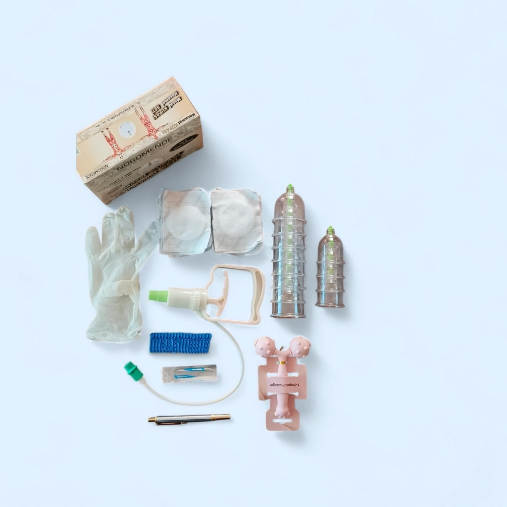 • <h1><strong>Tam Profesyonel Hacamat Seti.</strong></h1><h2>8 PROFESYONEL GOLD 6 NO HACAMAT KUPASI</h2><h2>4 PROFESYONEL GOLD 5 NO HACAMAT KUPASI</h2><h2>1 HACAMAT POMPASI</h2><h2>1 ELDİVEN</h2><h2>1 11 NUMARA BİSTURİ UCU</h2><h2>1 METAL HACAMAT KALEMİ</h2><h2>20 HACAMAT KALEMİ İĞNESİ</h2><h2>1 ABRİZON HORTUMU</h2><h2>20 PAMUKLU FLASTER</h2><h2>TOPLAM 58 SET.</h2>