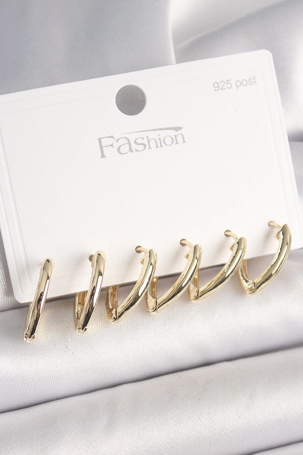 ® 925 Ayar Gümüş Çivi Pirinç Gold Renk Üçgen Model Kadın Küpe Seti