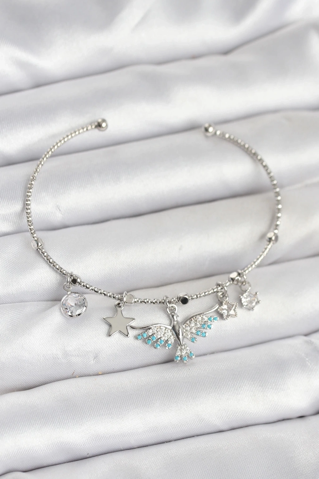 ® Anka Kuşu Charmlı Gümüş Renk Pirinç Kadın Bileklik