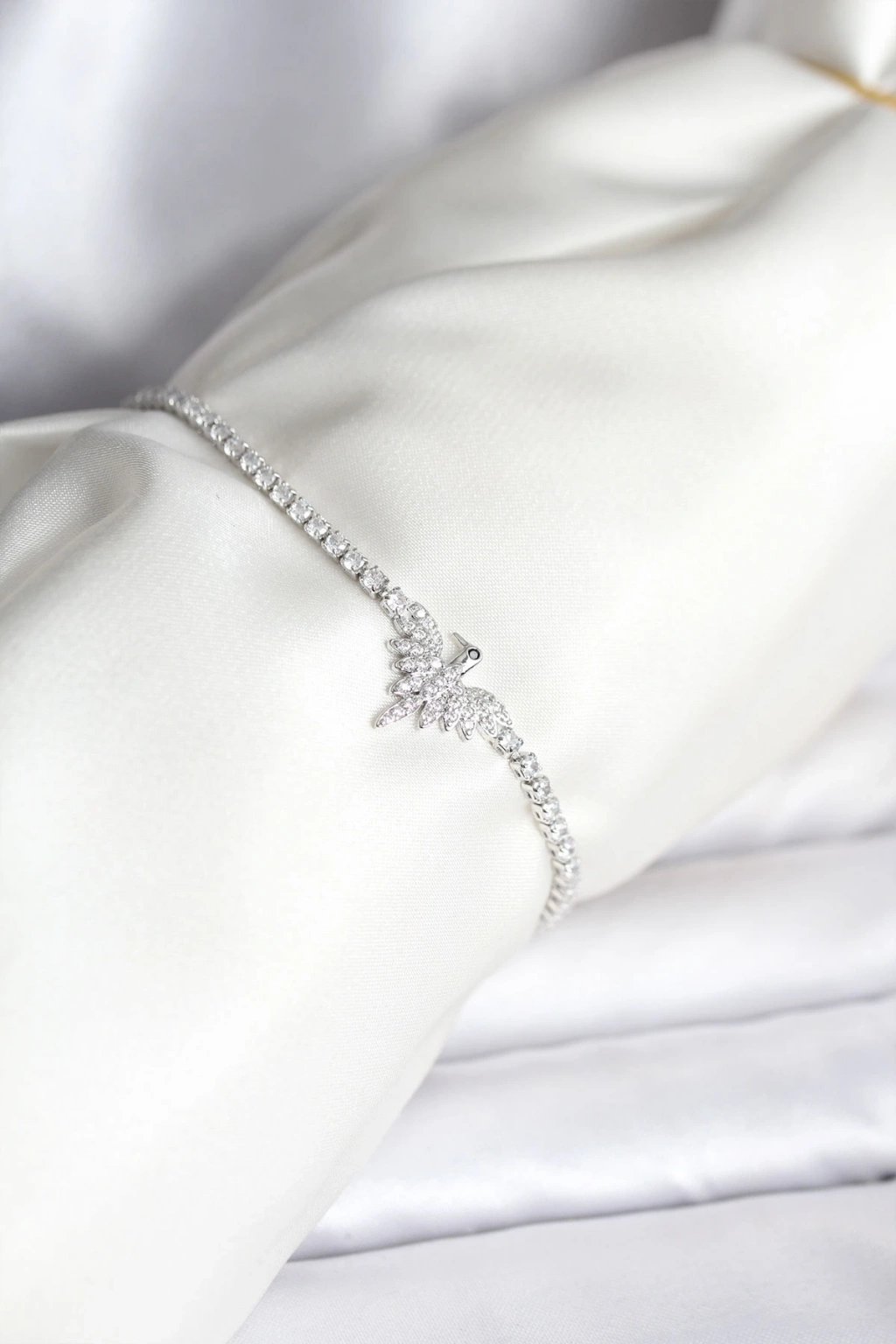 ® Anka Kuşu Model Zirkon Taşlı Gümüş Renk Pirinç Su Yolu Kadın Bileklik