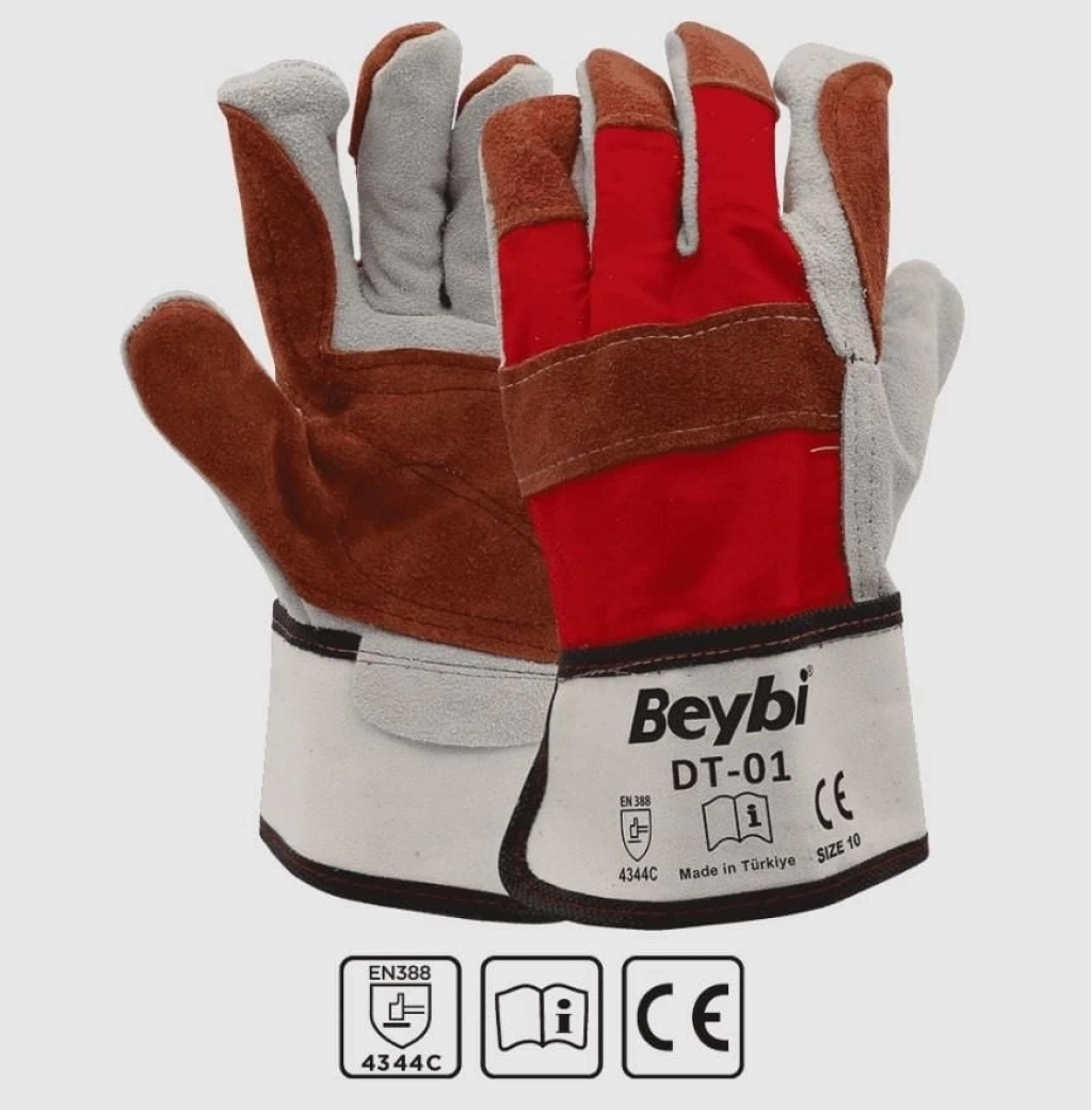 DT-01, Avuç içi ve tüm parmakları yarma deriden imal edilmiştir. Avuç içindeki takviye kısmı süet deriden, el üstü kırmızı koton kumaştandır. Avuç içi ısı iletimini azaltan ter emici pamuk astarlıdır. Emniyet bilekliği sayesinde rahatça giyilip çıkarılabilir. Ağır mekanik işlerde, inşaat işlerinde kullanıma uygundur.