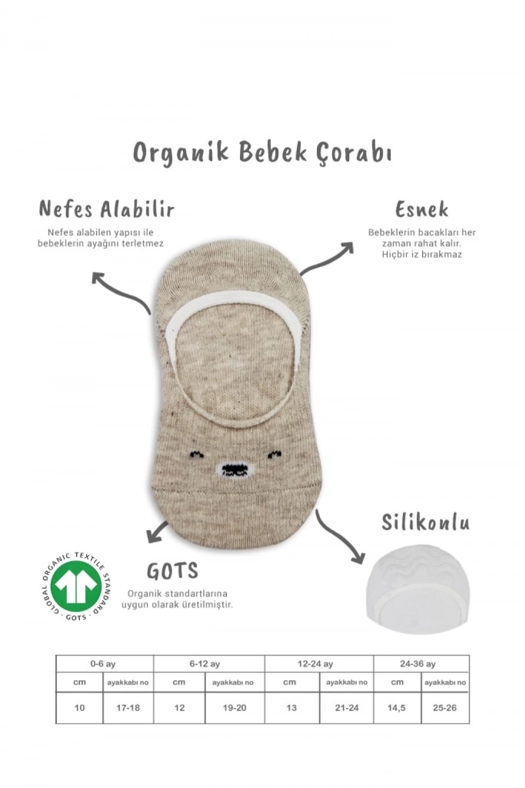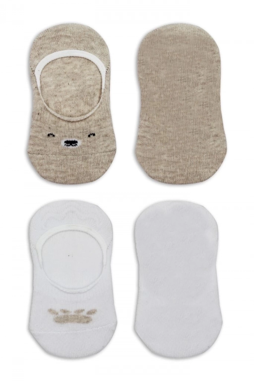 ® 2'Li Babet Cute Face Penye Çorap 30103 Bej Beyaz