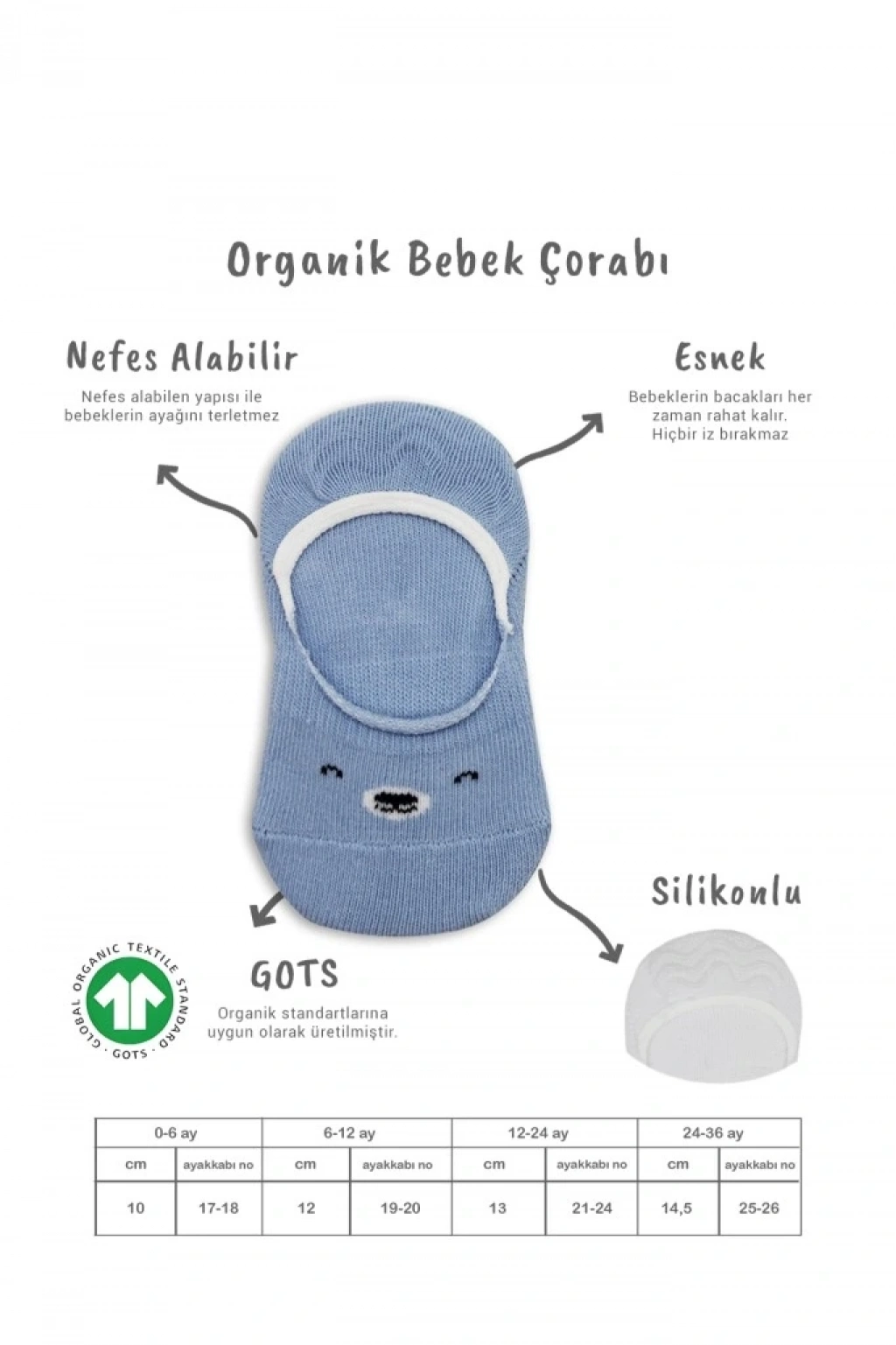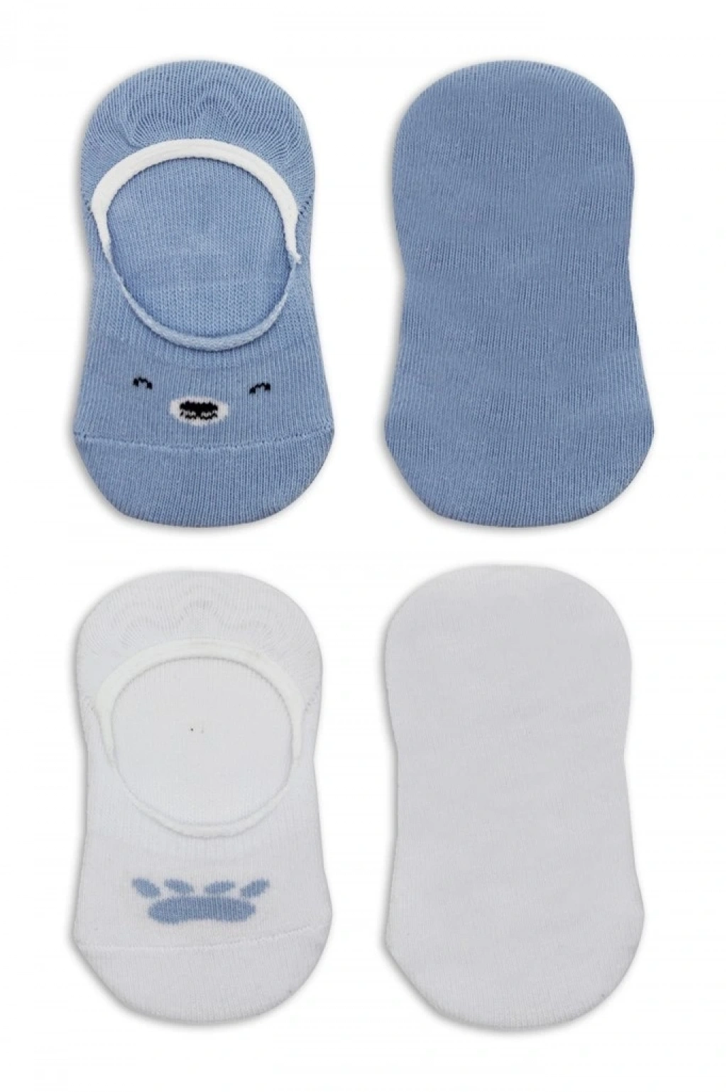 ® 2'Li Babet Cute Face Penye Çorap 30103 Mavi-Beyaz