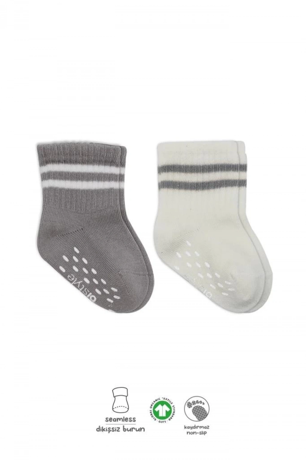 ® Çemberli Kaymaz Soket Çorap 2'Li BS10125 Gri Ekru