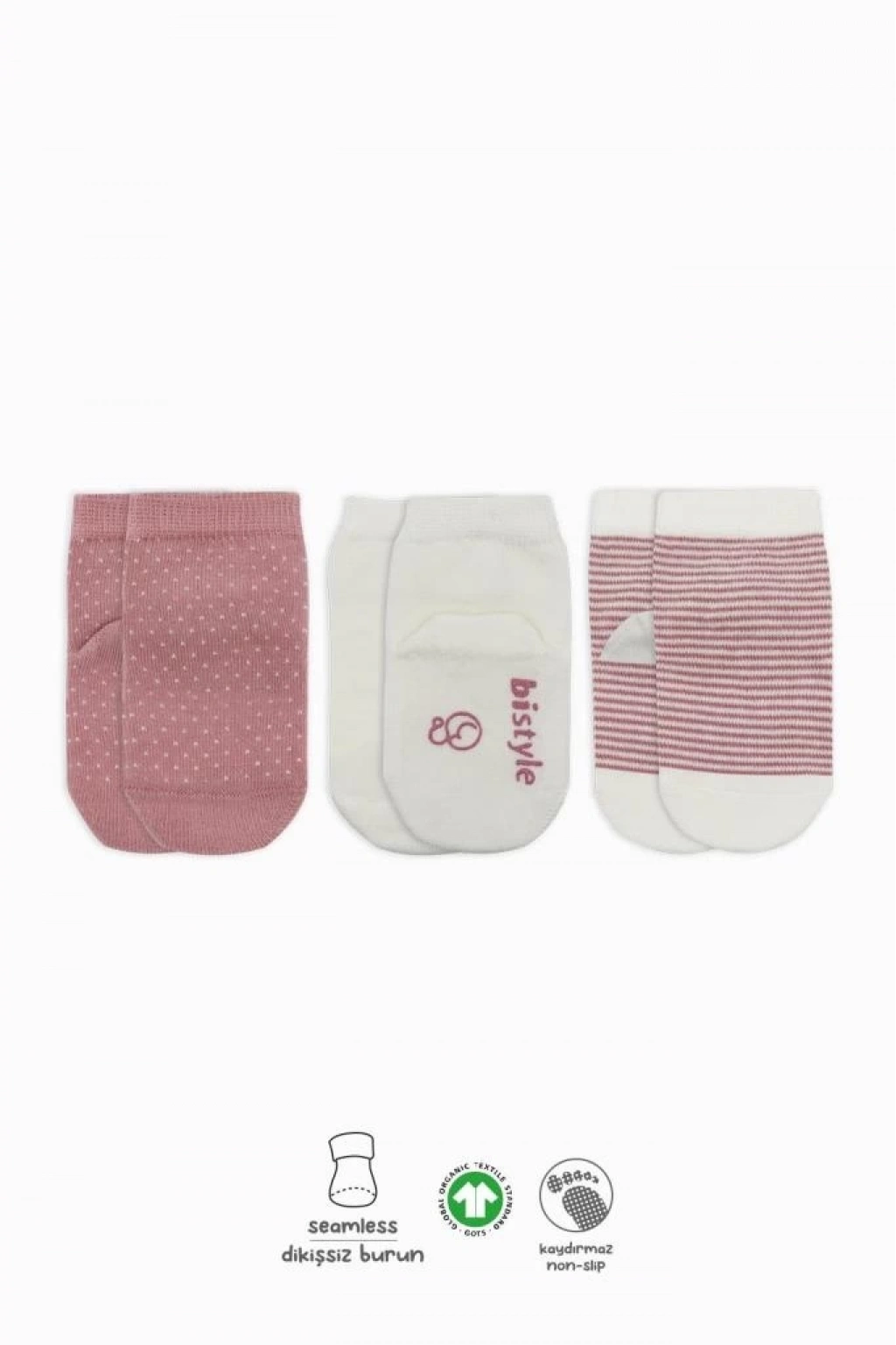 ® Puanlı Kaymaz Penye Soket Çorap 3'Lü BS10108 Pudra