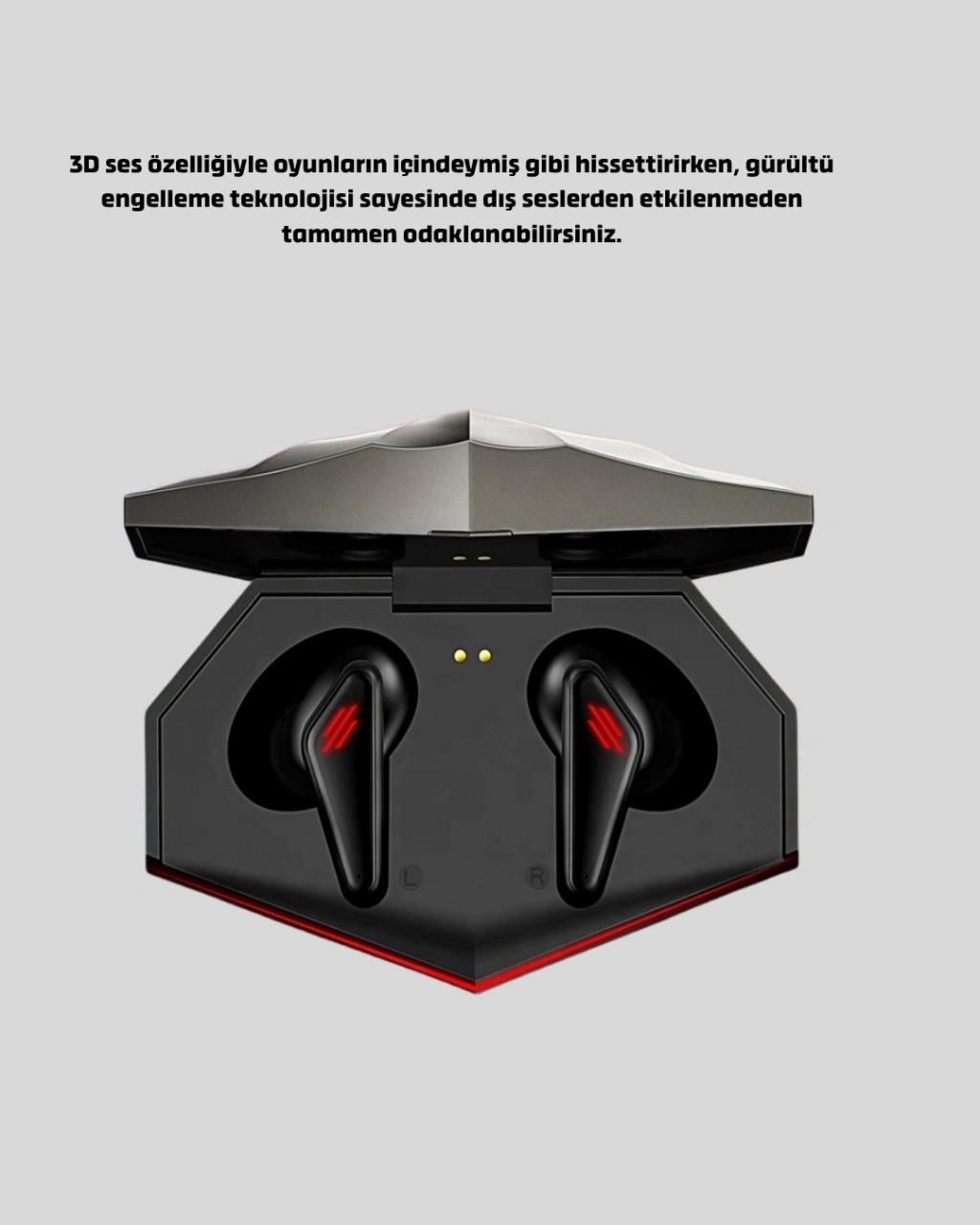 Oyun dünyasında başarı, doğru ekipmanla başlar! Bu oyuncular için özel tasarlanmış kulak içi Bluetooth kulaklık, 45 ms ultra düşük gecikme süresiyle ses ve görüntü arasında tam senkronizasyon sağlar. Oyunlarda komutları anında duyar, gecikmesiz ses aktarımıyla rakiplerinize karşı avantaj elde edersiniz.3D surround ses teknolojisi, derin baslar ve net tizlerle sizi oyunun içine çeker. Her adımı, patlamayı veya silah sesini gerçekçi biçimde duyarak sahnenin tam ortasında hissedersiniz.Gürültü engelleme (Noise Cancelling) özelliği, dış sesleri filtreleyerek yalnızca oyuna odaklanmanızı sağlar.Bluetooth 5.0 bağlantı teknolojisi, 10 metreye kadar kararlı ve kesintisiz performans sunar. Android, iOS ve PC cihazlarıyla tam uyumludur. Ergonomik silikon kulak yapısı, uzun süreli oyun maratonlarında bile konfor sağlar; 90° açılı kulaklık tasarımı takıp çıkarmayı kolaylaştırır.LED ışıklı şık gövdesi, gece oyun seanslarında görsel bir stil kazandırır. Dahili mikrofonu sayesinde takım arkadaşlarınızla kristal netliğinde iletişim kurabilirsiniz.Hafif, dayanıklı ve modern tasarımıyla bu kulaklık; hem oyun hem müzik deneyiminde üst düzey performans arayanlar için mükemmel bir tercihtir.