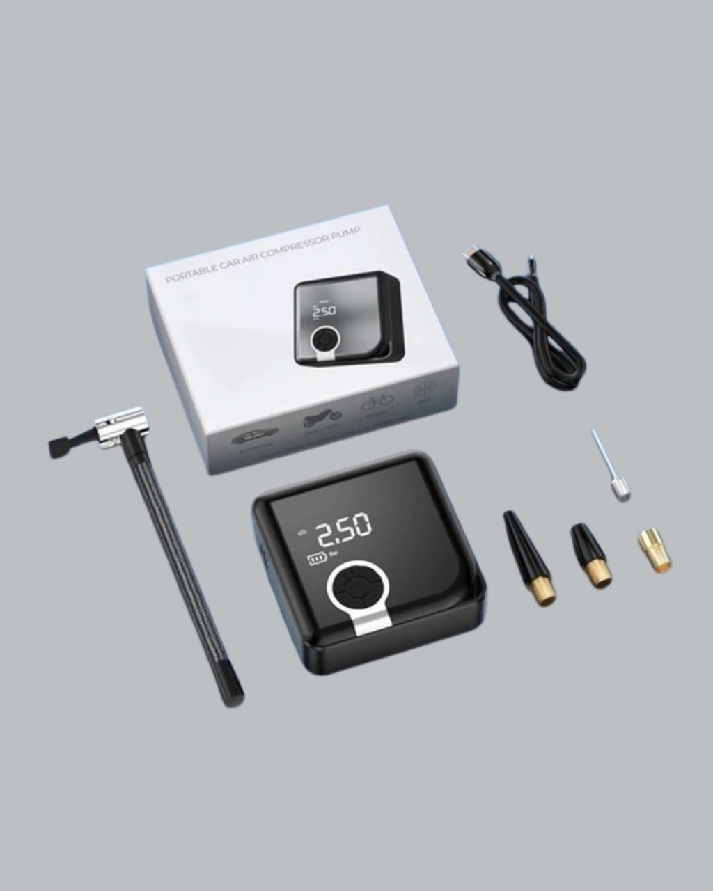 Dijital ekranlı taşınabilir akıllı hava kompresörü, modern sürücüler için güvenlik ve konforu bir arada sunan bir üründür. Kompakt boyutu sayesinde aracınızda fazla yer kaplamaz ve ihtiyaç duyduğunuz her an yanınızda bulundurabilirsiniz. Gelişmiş motor teknolojisiyle donatılmış bu cihaz, 150 PSI’a kadar basınç kapasitesine sahiptir ve otomobil, motosiklet, bisiklet lastikleri ile toplar ve şişme ürünlerde güvenle kullanılabilir.LED ekran göstergesi, basınç değerlerini hassas bir şekilde ölçmenize ve anlık takip etmenize imkan tanır. Psi, Bar ve KPA birimlerinde ölçüm yapabilen bu cihaz, lastikleriniz için doğru değeri kolayca belirlemenize yardımcı olur. Ayrıca önceden ayarladığınız basınca ulaştığında otomatik olarak kapanır, böylece fazla şişirme riskini ortadan kaldırır.6000 mAh kapasiteli bataryası sayesinde kablosuz kullanım kolaylığı sunar. Tek şarjla dört lastiğe kadar şişirebilir, acil durumlarda güvenilir bir çözüm sağlar. Type-C şarj girişi, hızlı ve güvenli şarj deneyimi sunar. Ayrıca üzerinde bulunan SOS ışıkları sayesinde gece veya düşük ışıklı ortamlarda hem güvenlik hem de kolaylık sağlar.Kamp, tatil veya uzun yolculuklarda da yanınızda taşıyabileceğiniz bu taşınabilir hava kompresörü, sadece lastiklerinizin değil, şişme yatak, can simidi ve toplar gibi birçok eşyanın da pratik şekilde şişirilmesini sağlar. Dayanıklı yapısı, güçlü motoru ve kullanıcı dostu arayüzü ile her araçta bulunması gereken vazgeçilmez bir üründür.