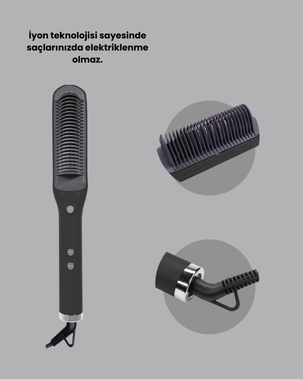 Günlük kullanım için uygun olan bu saç düzleştirici tarak, saçlarınızı yıpratmadan düzleştirmenize yardımcı olur. Isı kontrolü sayesinde saç tipinize uygun sıcaklık ayarını seçebilirsiniz. İyon özelliği, saçların daha canlı ve parlak görünmesini destekler. Otomatik kapanma özelliği güvenli kullanım sunar. Pratik, hızlı ve etkili saç şekillendirme arayanlar için ideal bir üründür.