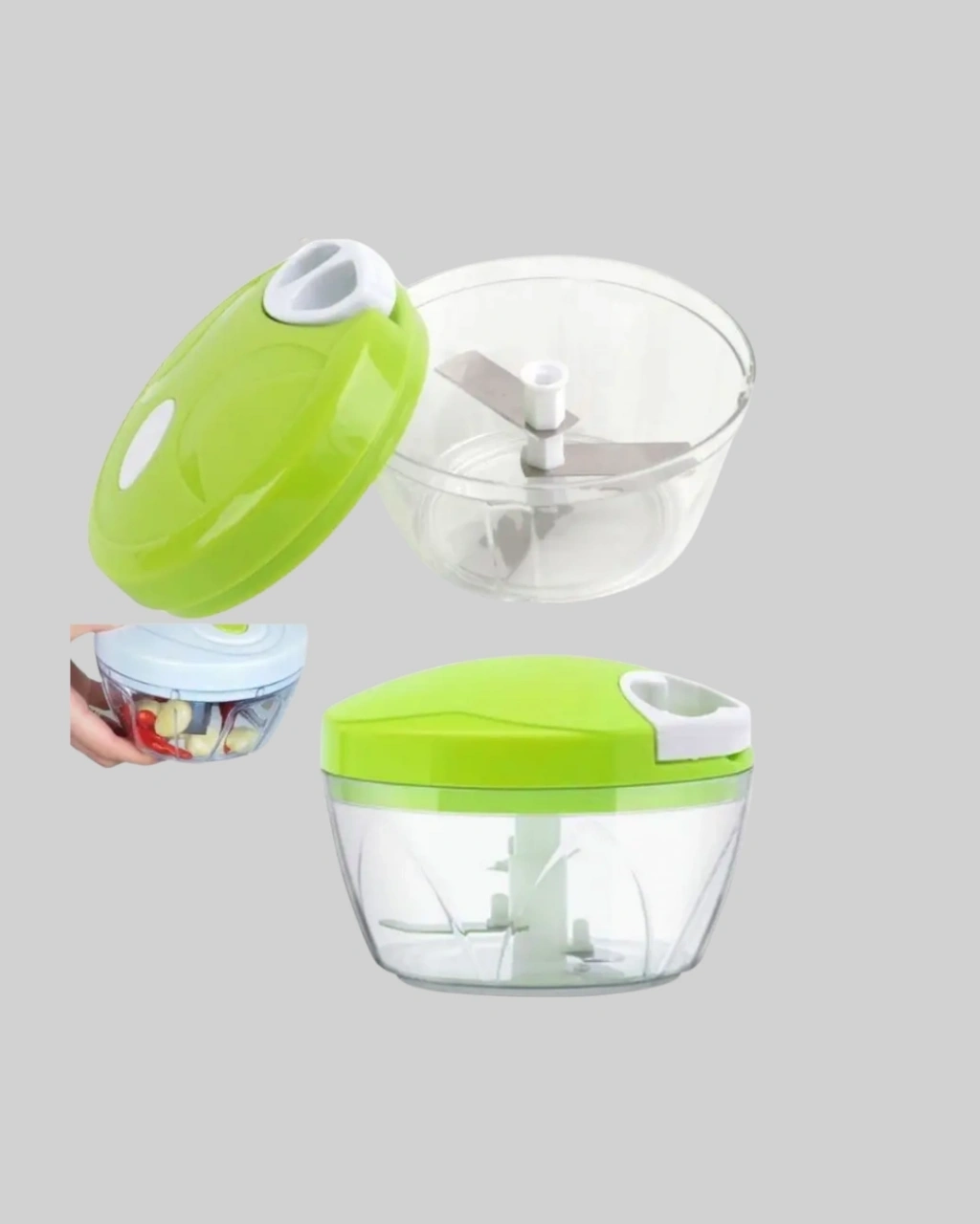 Manuel yiyecek doğrayıcı, mutfakta hız ve pratiklik arayanlar için tasarlanmış kullanışlı bir yardımcıdır. Elektrik gerektirmeyen ipli mekanizması sayesinde her ortamda rahatlıkla kullanılabilir. Üç adet paslanmaz çelik bıçağı, yiyecekleri kısa sürede eşit parçalara ayırarak yemek hazırlık süresini kısaltır. Küçük porsiyonlar için idealdir ve mutfak robotlarına kıyasla çok daha az yer kaplar. Kolay temizlenebilir yapısı, hijyenik ve güvenli kullanım sunar. Günlük yemek hazırlıklarında zaman kazandıran, pratik ve dayanıklı bir mutfak ürünüdür.