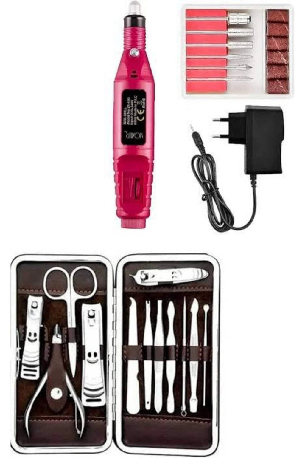® Elektrikli Manikür Pedikür Seti İkili Set 12 Parça Tırnak Bakımı Törpü Protez Çıkarma