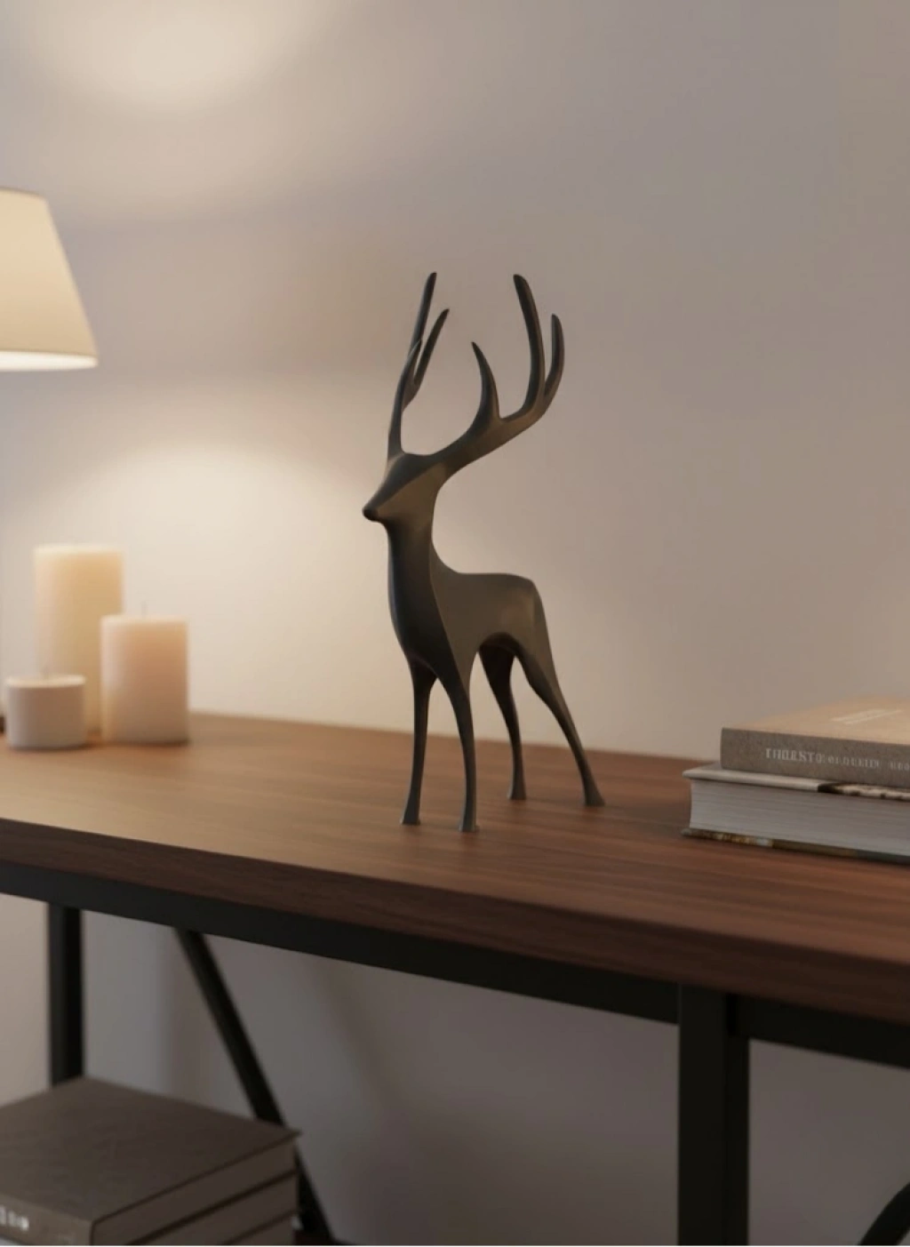 • Dekoratif Geyik Figürü Gri, sade ama etkileyici tasarımıyla yaşam alanlarınıza modern bir dokunuş kazandırır. 12×24 cm ölçüsü, ürünü hem ön planda sergilemek hem de raf dekorasyonunda denge unsuru olarak kullanmak için ideal hale getirir. Gri rengi sayesinde açık ve koyu tonlu mobilyalarla uyum içinde kullanılabilir.Salon raflarında, kitaplık üzerinde veya masa üstünde konumlandırıldığında mekâna düzenli ve estetik bir görünüm kazandırır. Özellikle sıcak ışık kullanılan loş salon ortamlarında figürün formu